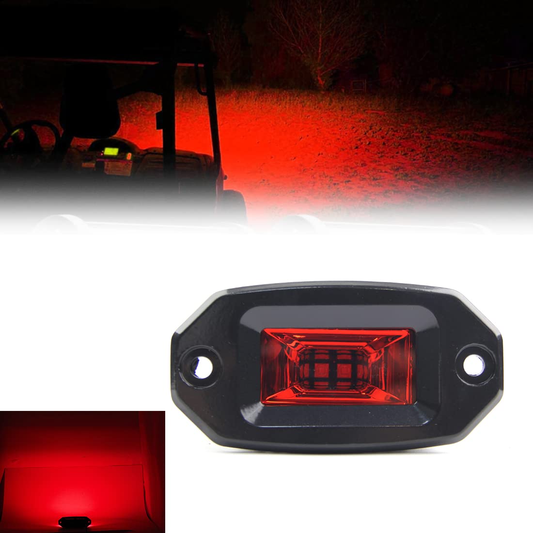 1.ハウジングカラー:ブラック<br> 2.ライトカラー:レッド<br> 3.色温度:6000K<br> 4.作動電圧:12-24V<br> 5.材質:アルミニウムハウジング、強化ガラスカバー<br> 6.製品包装:88*96*137 mm<br> 7.重さ:310g<br> 8.防水レベル:IP67<br> 9.パッケージ内容:埋め込み専用ワークライト*1<br>