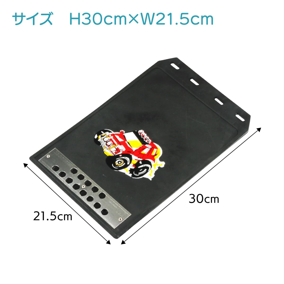 軽トラや小型車にぴったりな汎用タイプのマッドガード(泥除け、マッドフラップ)です。耐久性に優れた素材を使用しており、雨やホコリから車を保護します。汎用タイプですので多くの車種でお使いいただけます。