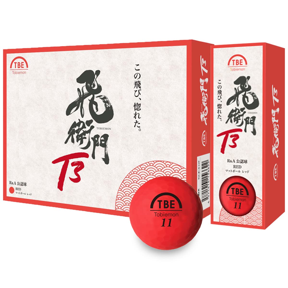 TOBIEMON(トビエモン) ゴルフボール 飛衛門 3ピース 蛍光マットカラー 1ダース(12個入り)レッドT-3BM-R