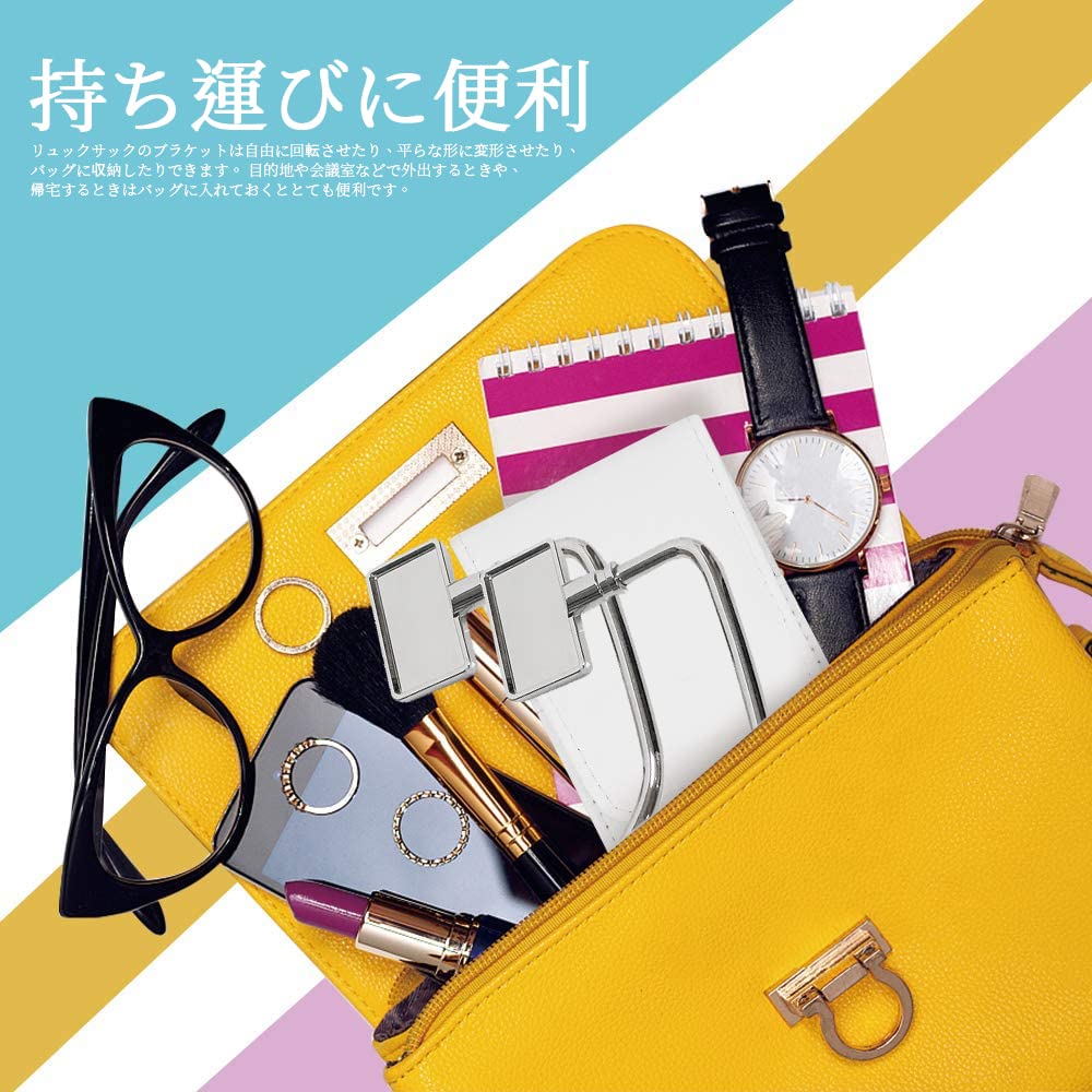 持ち運びに便利:リュックサックのブラケットは自由に回転させたり、平らな形に変形させたり、バッグに収納したりできます。 目的地や会議室などで外出するときや、帰宅するときはバッグに入れておくととても便利です
