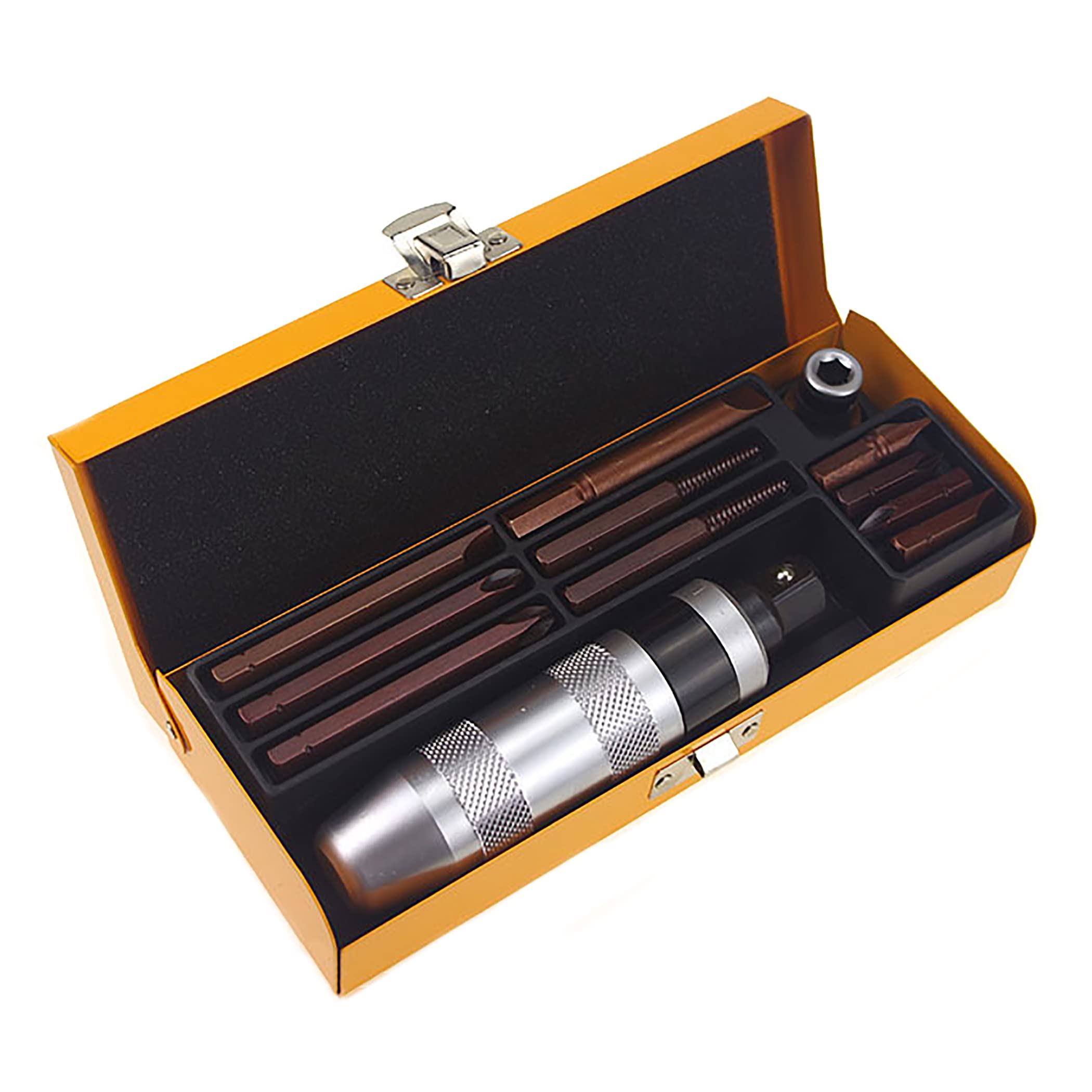 Lanx. ショックドライバー 12PC インパクトドライバー 打撃ドライバー TOOL-SHOCK01 なめたネジが回せる レザー クラフト ツール セット ニックス 差し 穴あけ 穴 ポンチ インチ インパクト ドライバー サイズ レンチ インナー バッグ ウエスト ポーチ 外し ウッド 延長 パイプ エンジニア エクステンション エルアングル (12PC)