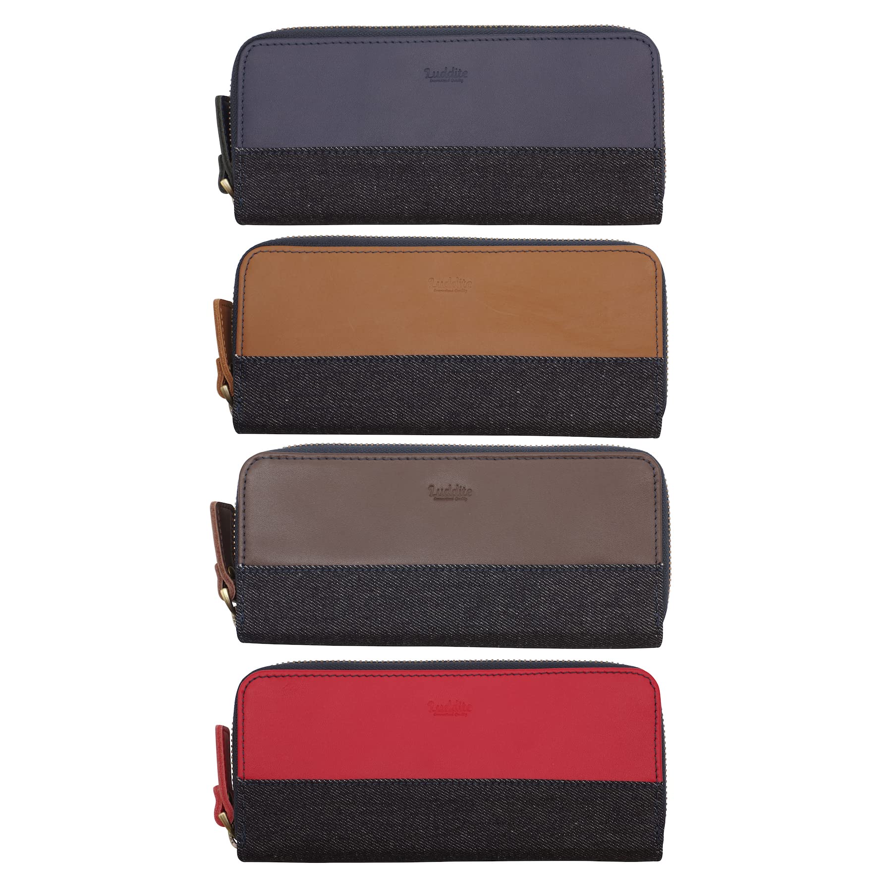 ラダイト(Luddite) 革コンビ ラウンドジップ ペンケース 2 【キャメル】デニム 本革 筆箱 LDKC-RZP2-09