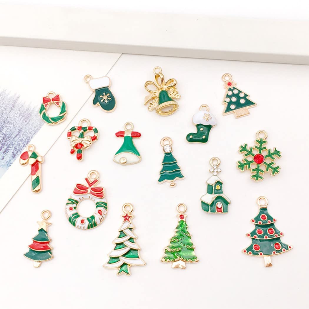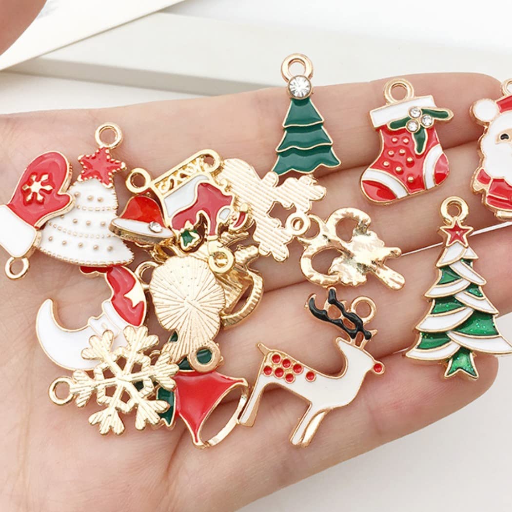[HappyHome] クリスマス チャーム オーナメント アクセサリーパーツ ペンダントトップ サンタ トナカイ 雪だるま など 手芸 DIY