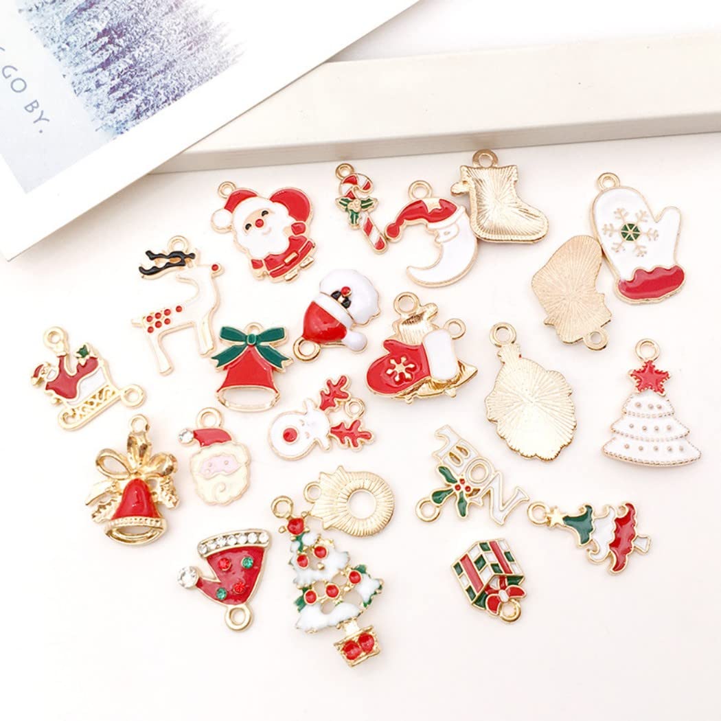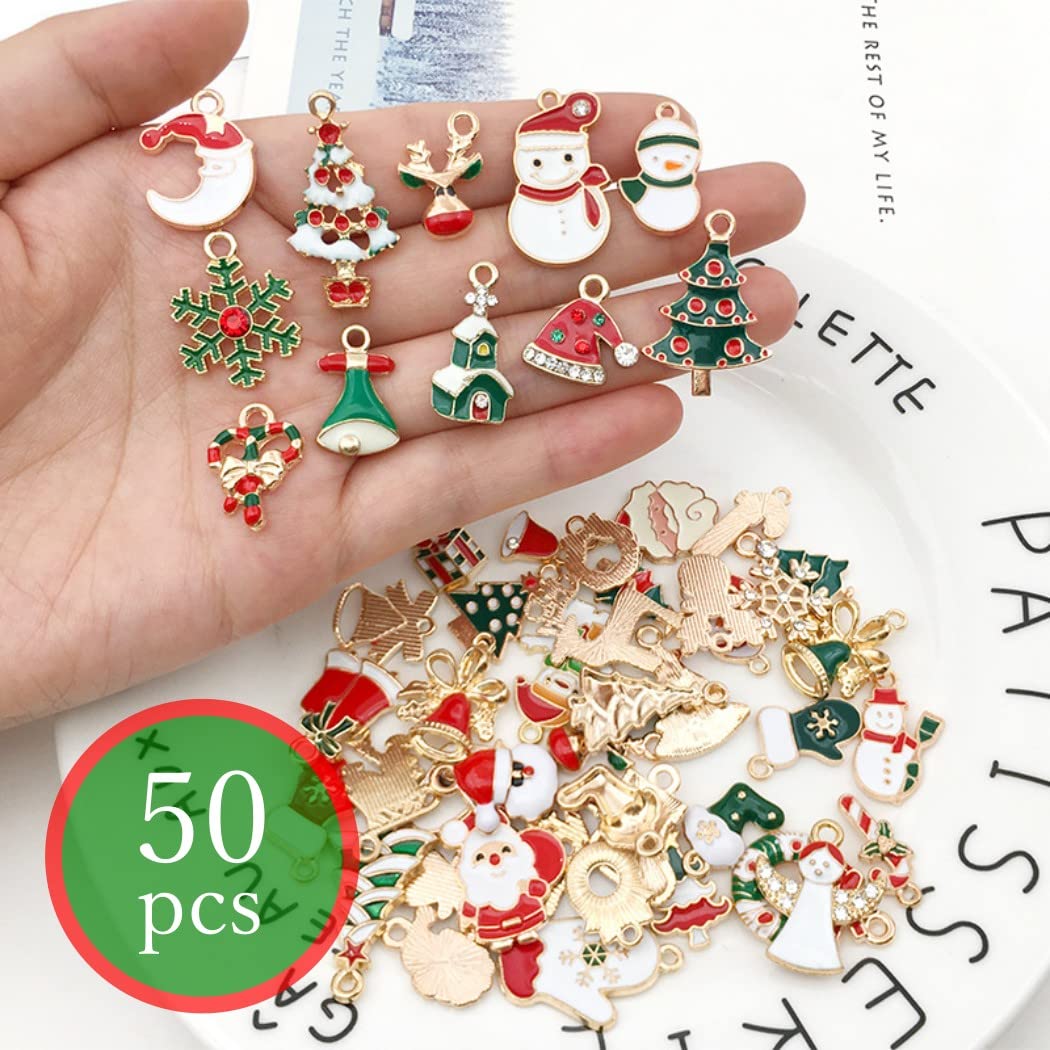 セット内容:チャーム50個(サンタクロース、トナカイ、雪だるま、クリスマスツリー、ベル、手袋、プレゼント、雪の結晶、リース、長靴など)