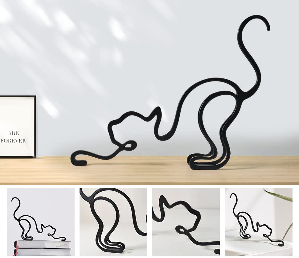 Room Decoration: Metal cat minimalist art sculpture is the perfect room decoration. It is suitable for the modern decoration of the living room, bedroom, dining room, bathroom, office, or corridor, and visually enhances simple furniture