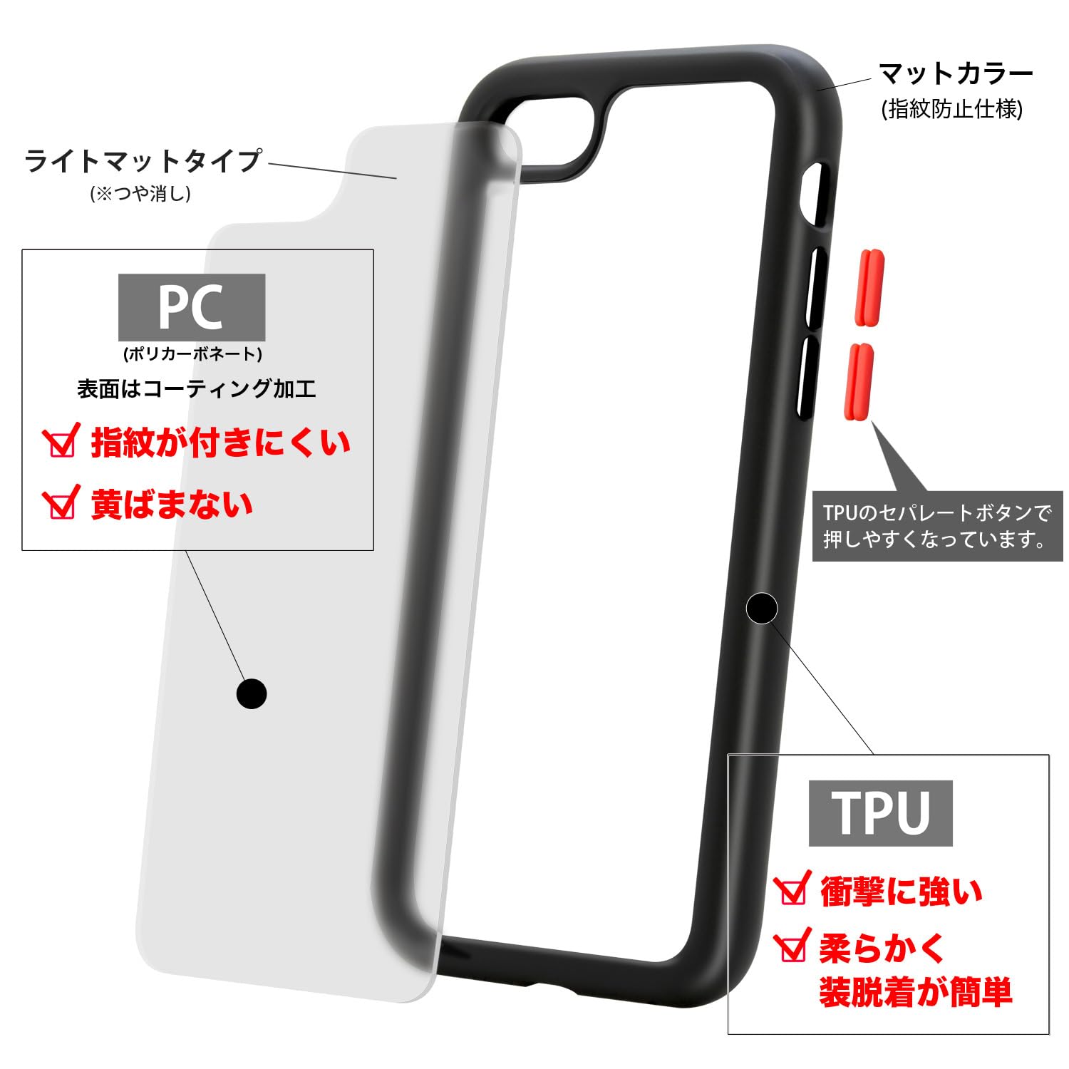iPhoneSE3/SE2(第3世代/第2世代)/8/7 (4.7インチ)用、PC(ポリカーボネート)+高品質TPUのハイブリッド仕様のケース