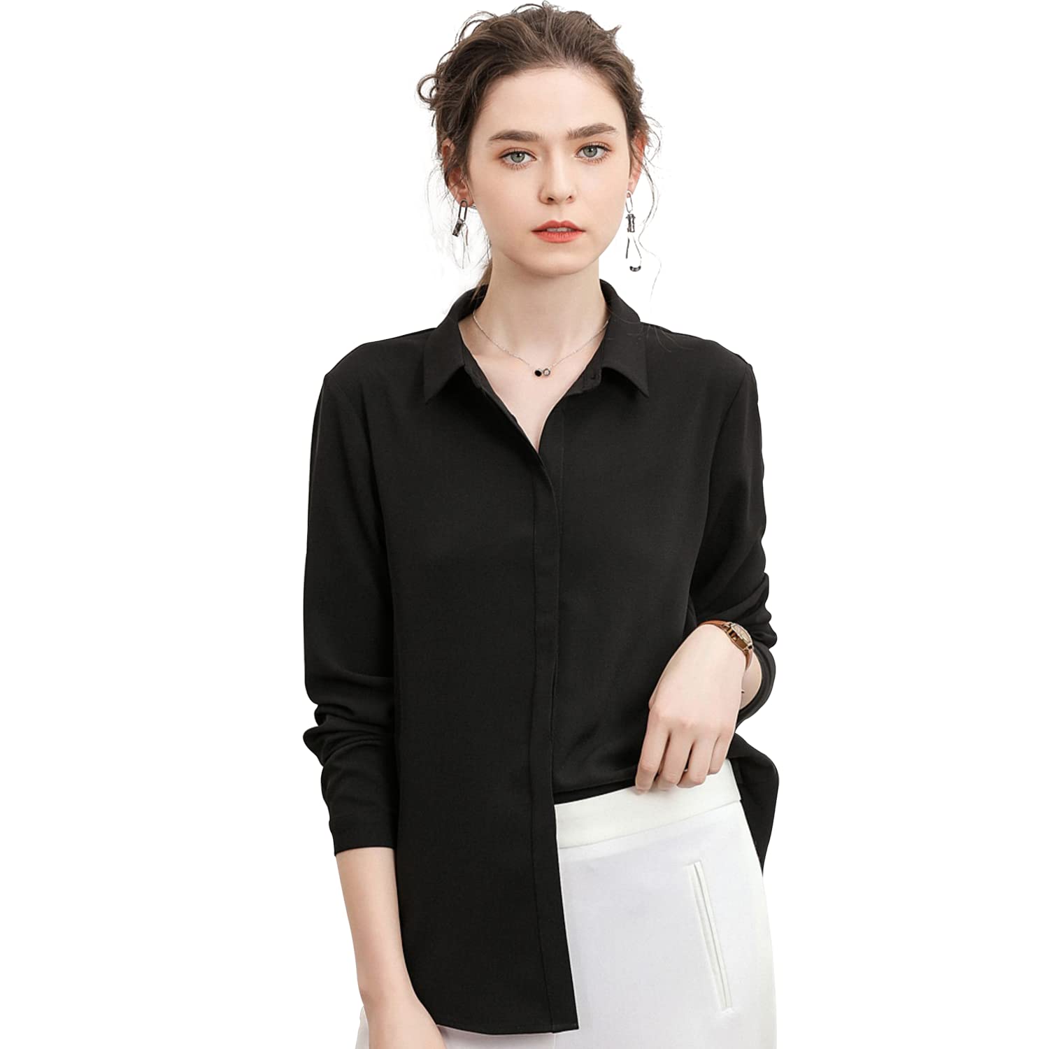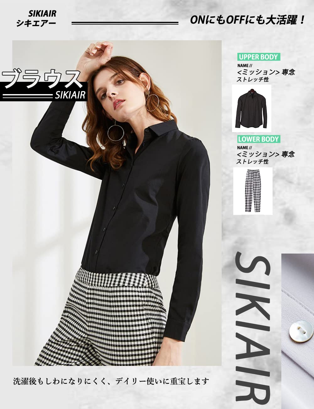 [シキエアー] ワイシャツ ブラウス レディース カッターシャツ とろみシャツ 長袖 ノーアイロン 就活 オフィス 事務服 ビジネス シャツ 形態安定 ストレッチ おしゃれ レギュラー 就活 女性 白シャツ 黒シャツ 襟付き 無地