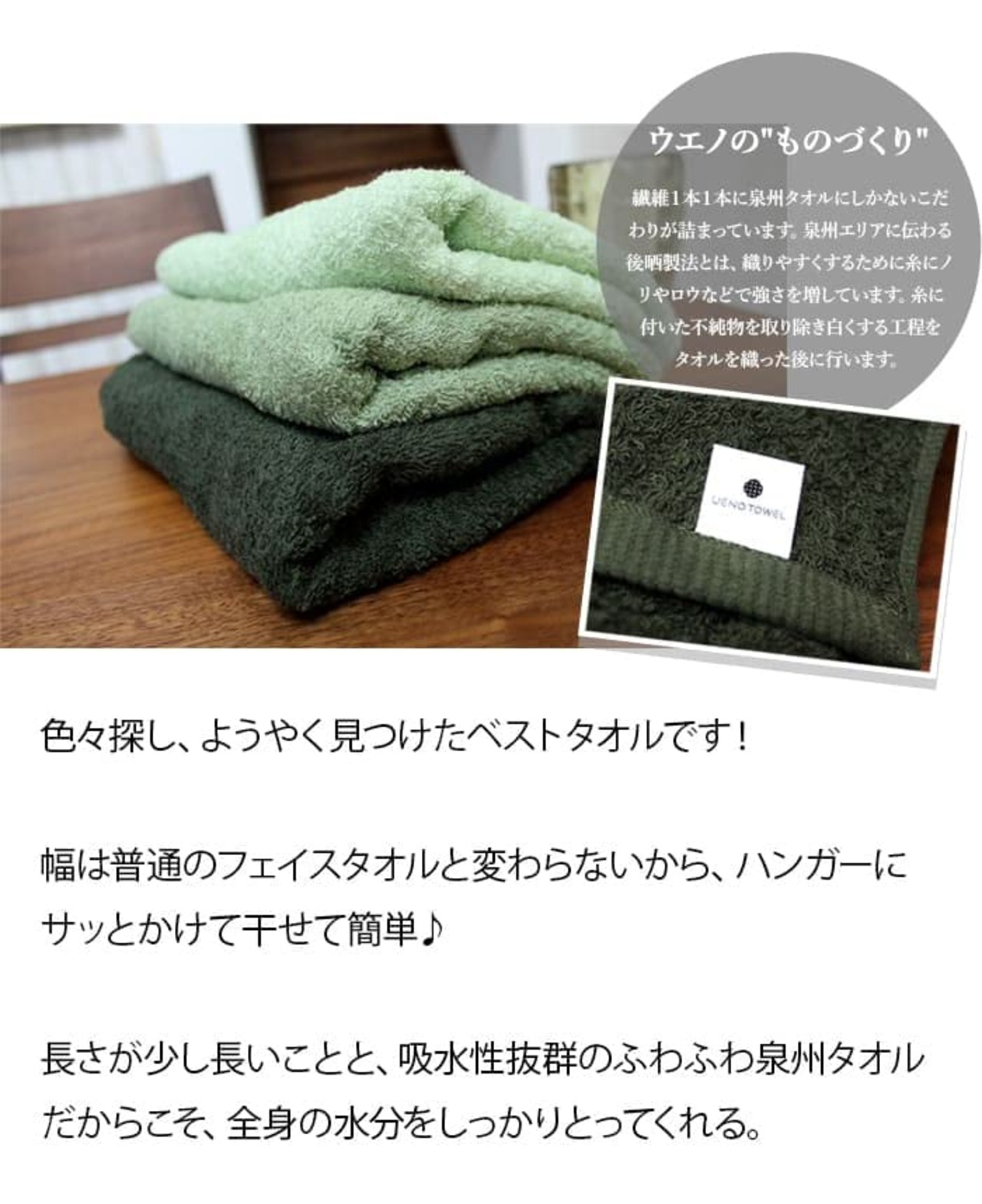 泉州こだわりタオルは大阪泉州で明治20年から続くタオルブランドです。和泉山脈の豊富な水源に支えられ「後晒し製法」により使い始めから高い吸水力があり、ふんわりと優しい触り心地のタオルです。