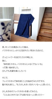 後晒しのタオルは水をよく吸い取り、そしてとても清潔です。綿本来の優れた吸水性をいかした最も理想的なタオルです。後晒しの工程は色々な汚れが洗い落とされてとても清潔。おろしたてのタオルでも安心してそのままお使いいただけます。