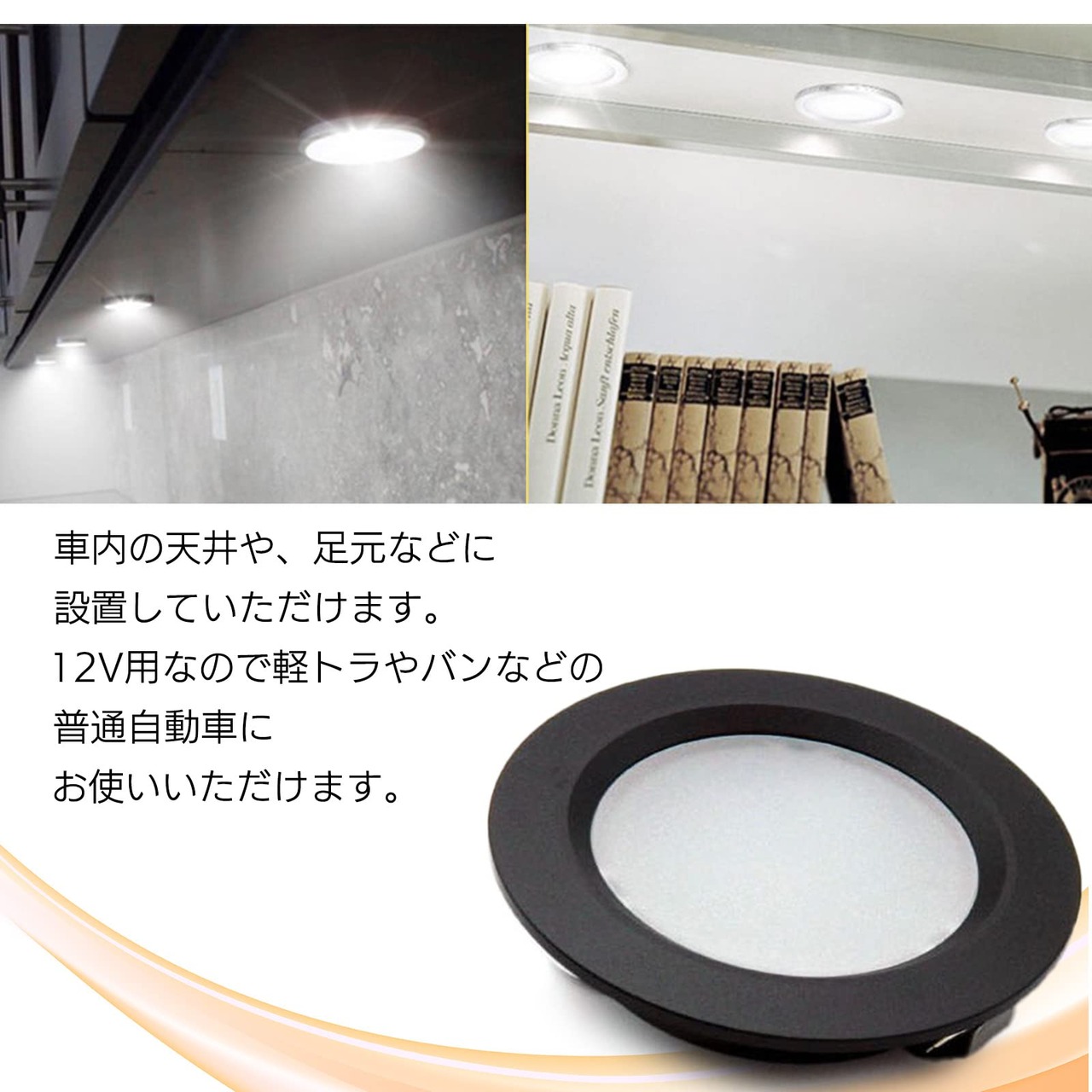 DIYカスタマイズや車中泊、キャンピングカーの照明強化に最適な車用ダウンライトで、夜間の視認性向上や雰囲気作りに貢献します。ガレージや倉庫の補助照明としても活躍し、小型ながらも明るい光を放つ耐久性の高いLEDライトです。
