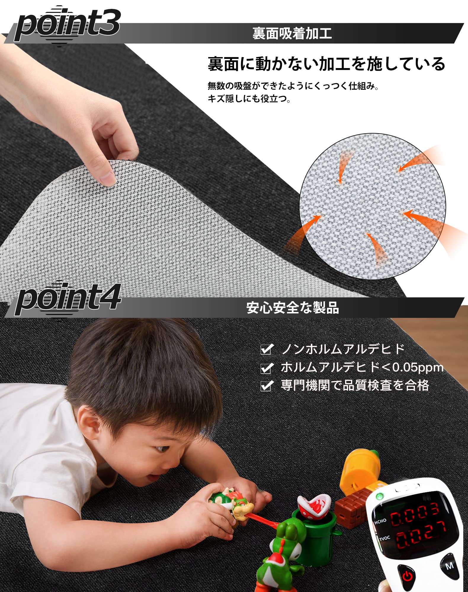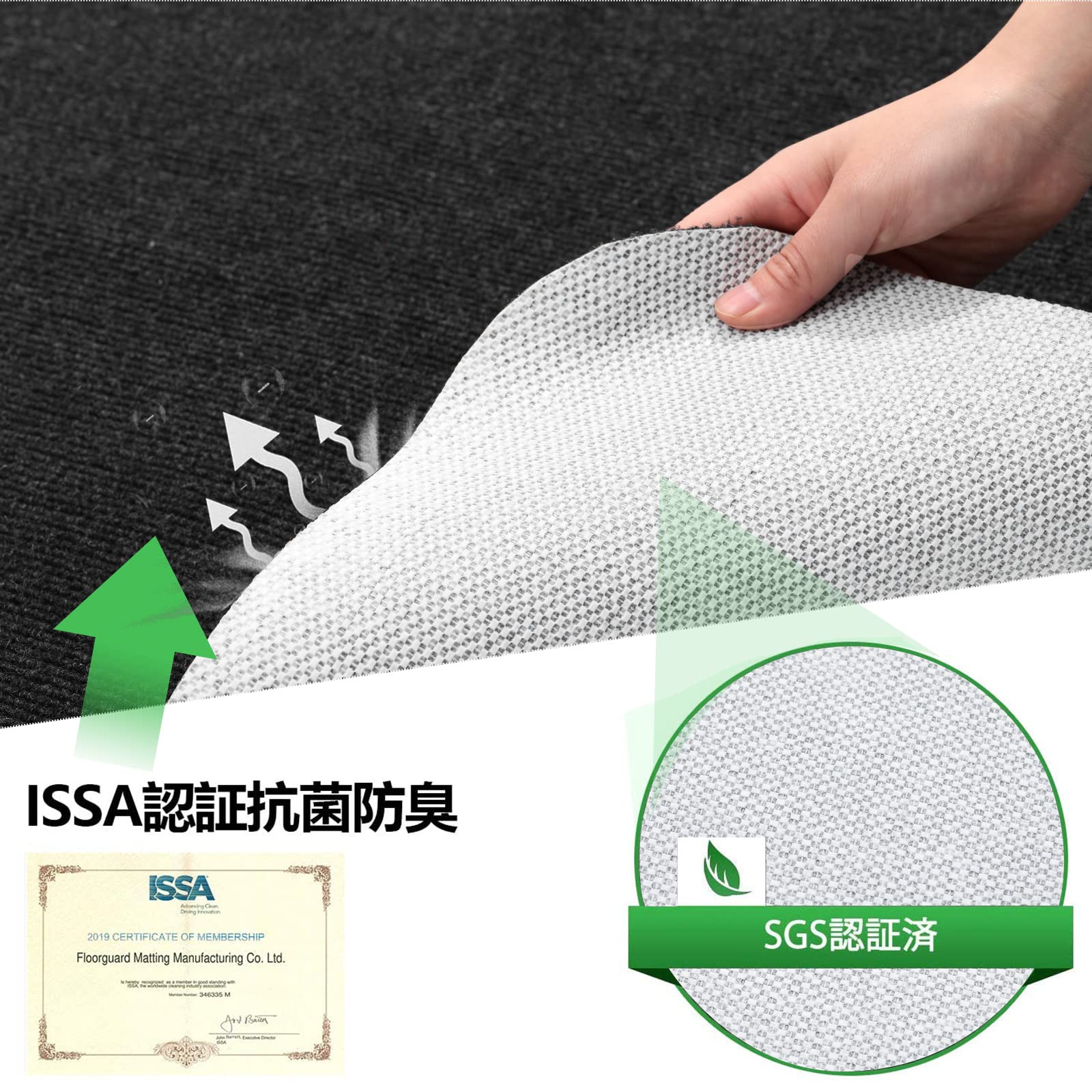 【ISSA抗菌認証】マットの絨毯に抗菌性銀イオンなどの成分を添加しています。革新の無毒無味TPEエコ素材を採用し、市販のpvc素材特有の化学臭いの問題を解決。抗菌と消臭効果がバッチリ,家族の健康守りは最適!