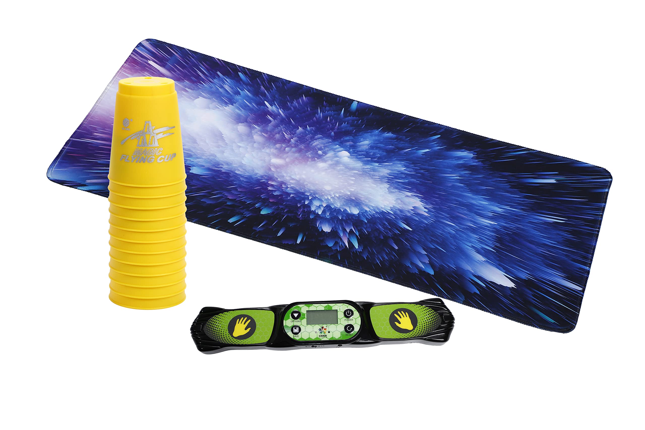 これだけで始められるスポーツスタッキングセット! 【セット内容】①カップ12個 ② マット ③ タイマー 【サイズ】カップ:直径76.5㎜、高さが95㎜ 【素材】プラスティック ●流行りのスポーツスタッキングは、12個のカップを様々なやり方で積んだり崩したりしながら、集中力と瞬発力を育み、スピードを競うスポーツ競技です。手先や頭を使うので、脳も鍛えられ、最近では高齢者施設・デイサービスなどのレクリエーション・リハビリなどにも導入されています。 ●海外で誕生した競技ですが、日本人の「無」になる禅の気持ちが全体に出ている日本人にこそ向いたスポーツ競技です。ご家庭のテーブルの上で毎日練習できますから、誰にも知られずの上達もできます。 ご自分用でも、ギフトとしても最適です! ●積み重ねた際に空気が抜ける穴や掴みやすい加工が施されているので、おうちでの練習には最適です。 【注意事項】1品1品を検品させていただいているため、外袋は開封している場合がございますので予めご了承ください。本体は新品未使用であるため、ご安心ください。