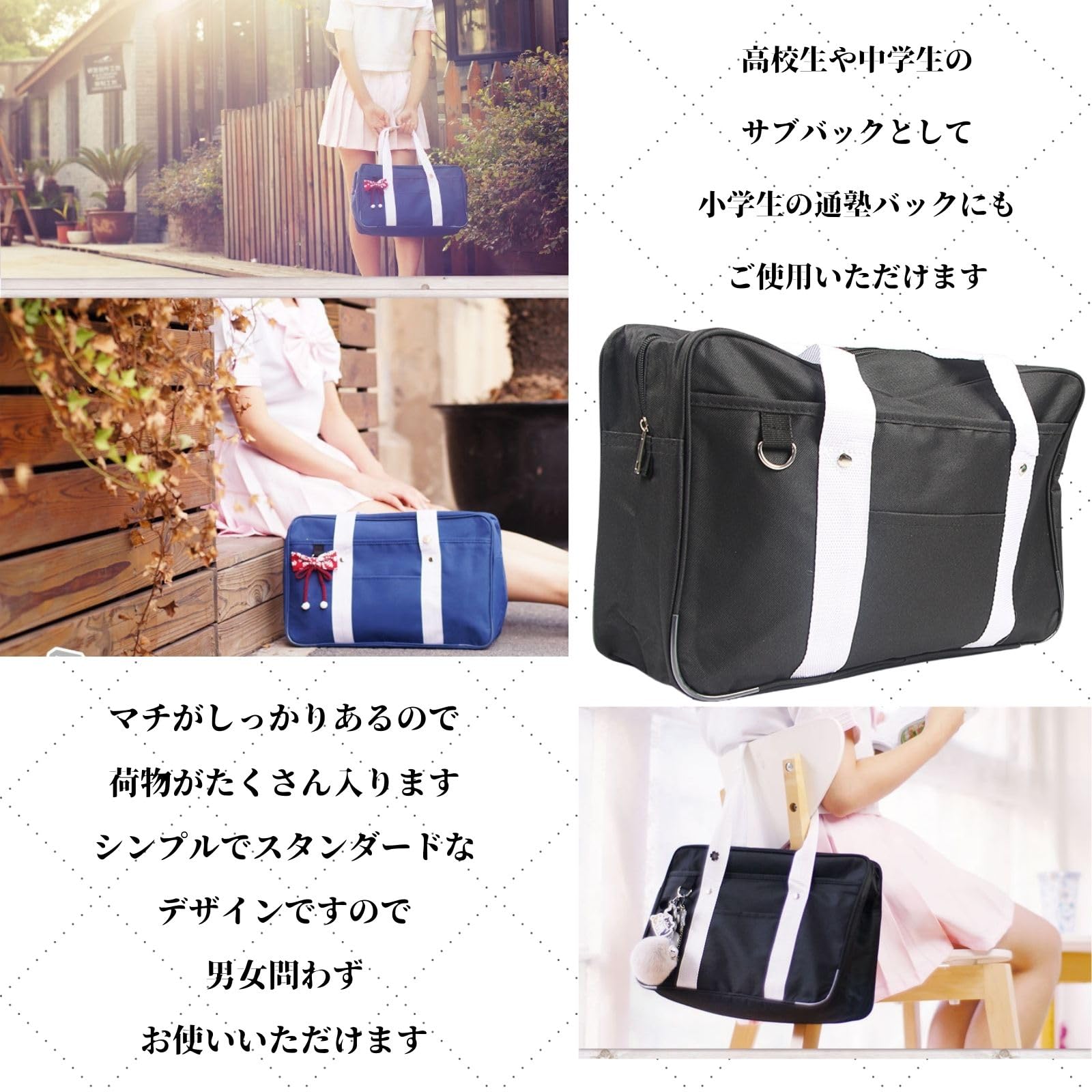 スクールバッグ スクバ ナイロン SCHOOL BAG 学生かばん 高校生 中学生 カバン サブバッグ 軽量 (ブラック)