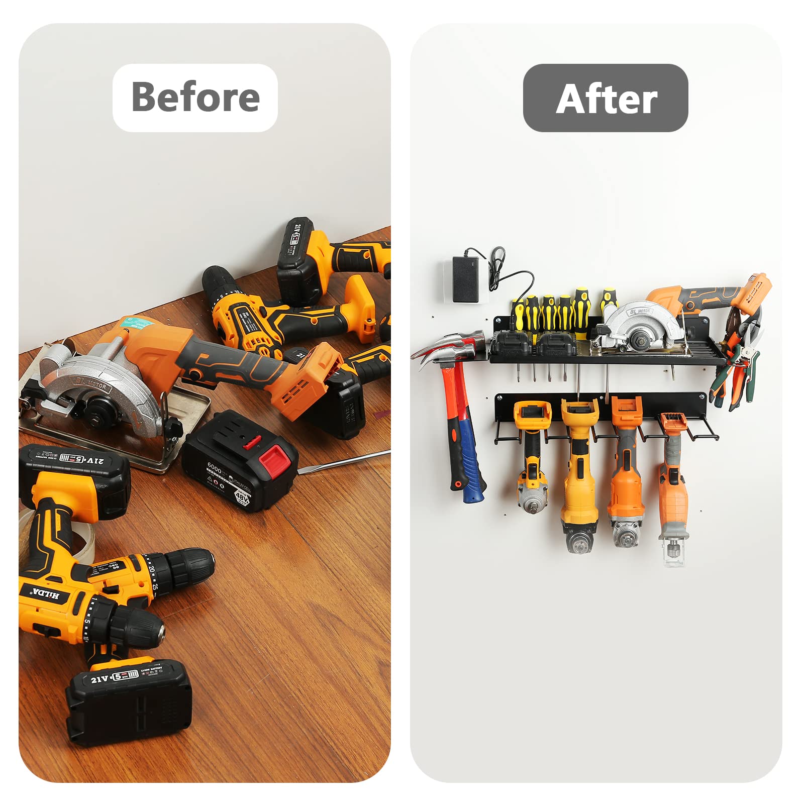 【DIYエキスパート】電動工具オーガナイザーの壁マウントの各部分は別々で、組み立てる必要はありません。適切な場所に設置できます。また、DIY愛好家への素晴らしいギフトアイデアでもあります。ツールオーガナイザーと収納ラックはガレージをすっきりと便利にし、彼を幸せにします。