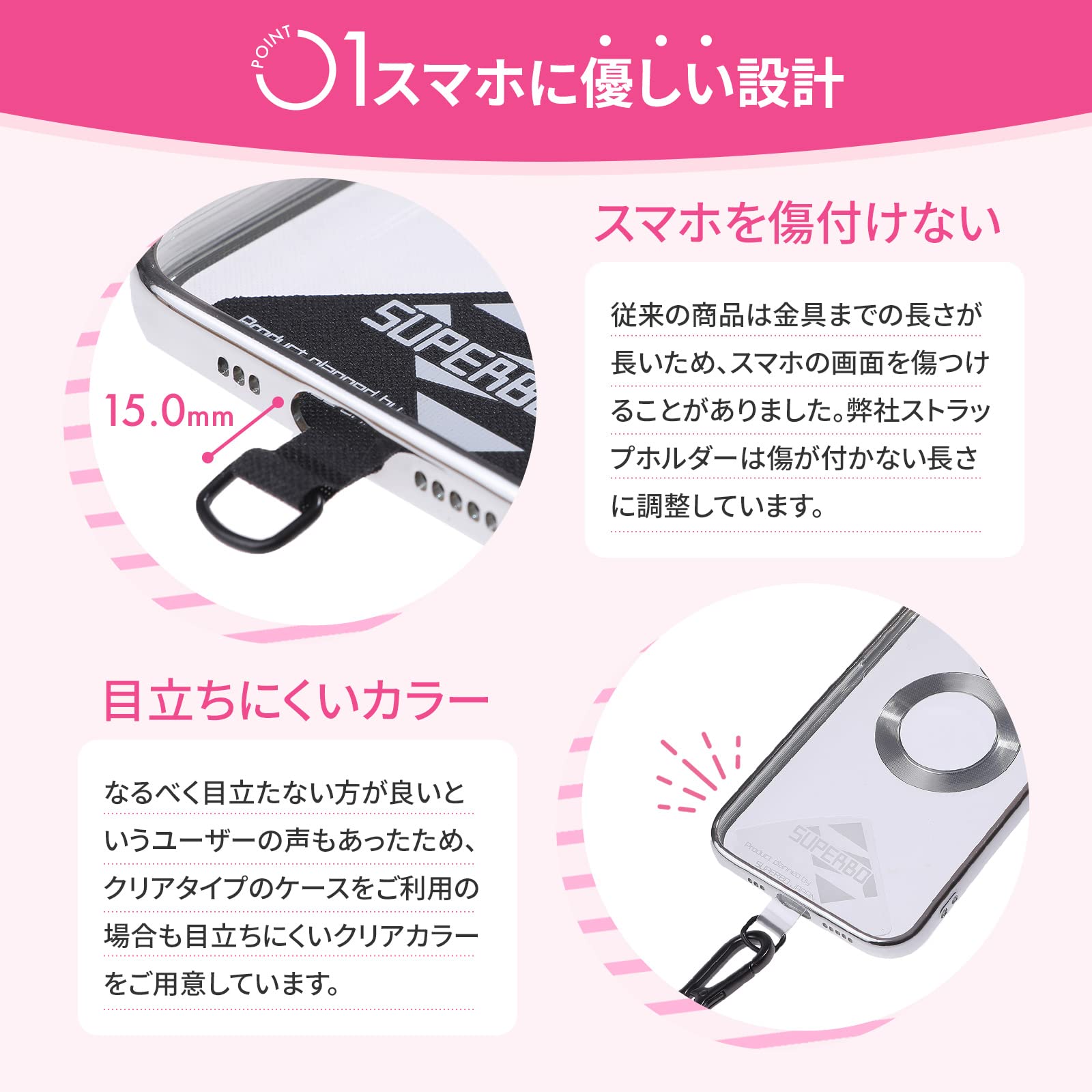 [SUPERBO] ストラップホルダー アタッチメント 2枚SET スマホストラップホルダー 全機種対応 落下防止 挟むだけ (ブラック クリア)