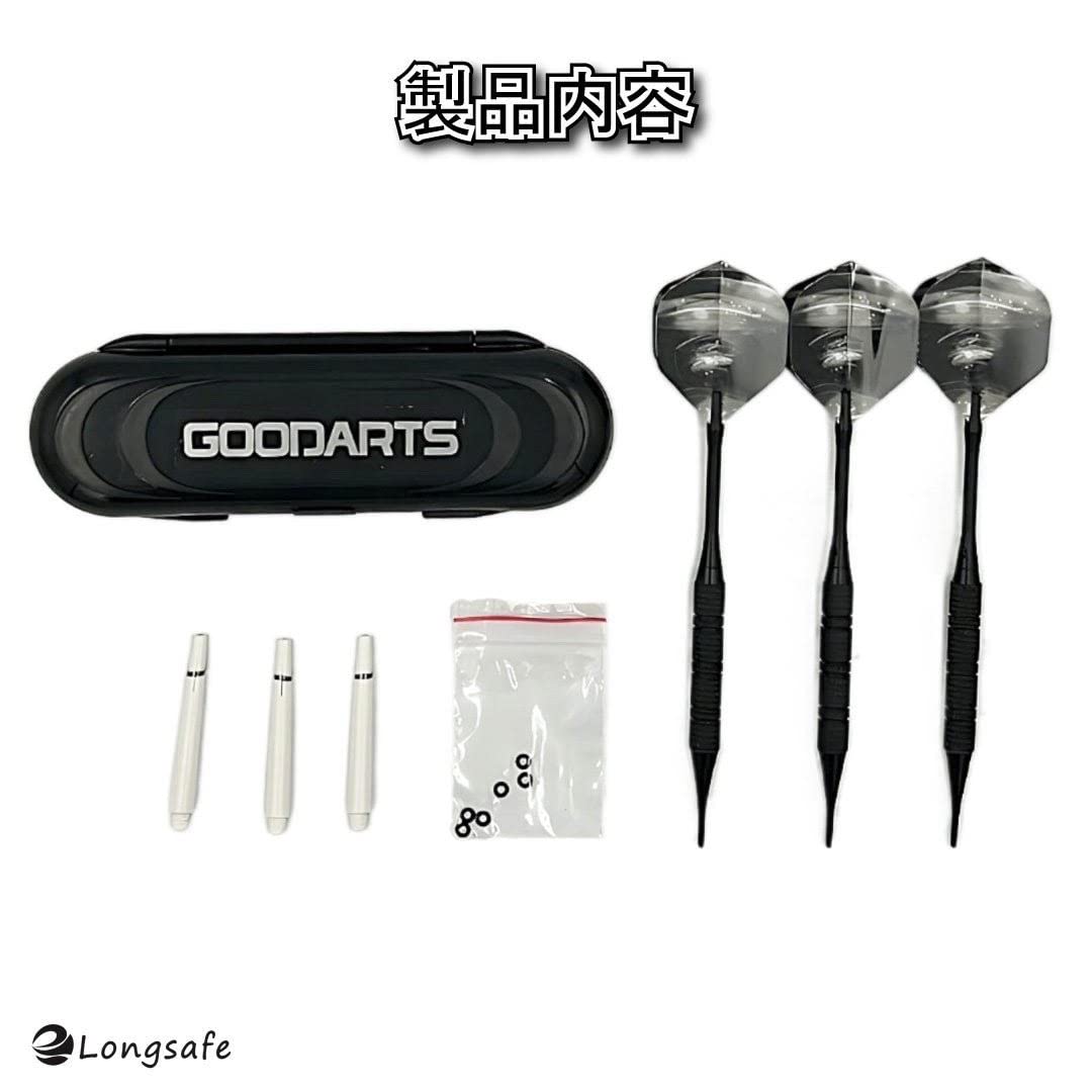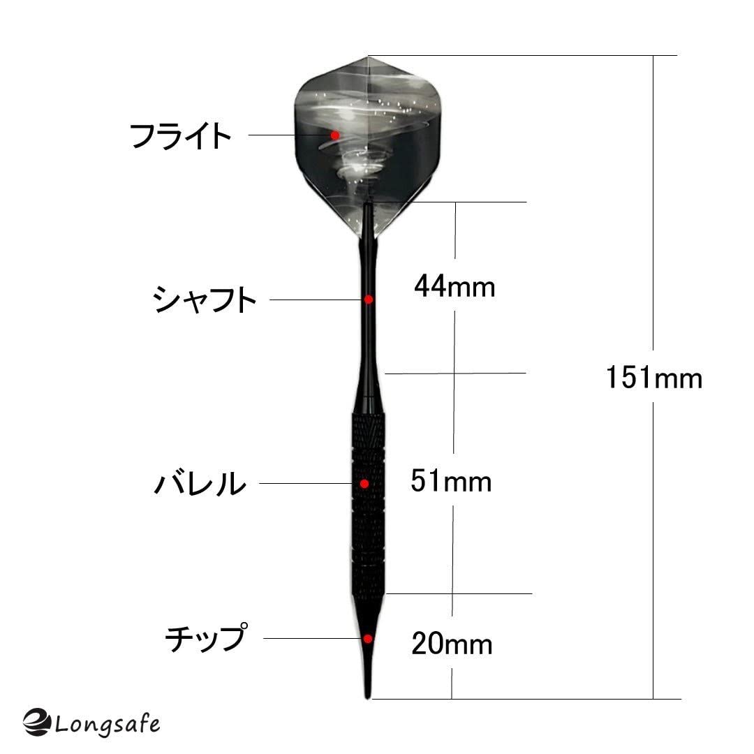 安心のブランド「 Longsafe 」<br> <br> ◆初心者・初中級者向けセットです。<br> <br> ◆2BA規格:市販のチップやダーツグッズでお好みにカスタマイズすることもできます!<br> デザインを変えたくなったら簡単にフライト、シャフトも別売り品に交換できます。<br> <br> <br> ◆実用的で扱いやすい18g。特徴的なカットとくぼみでしっかりとグリップできます。<br> ベーシックなデザインで癖が無く、どんな方でも慣れやすいモデルです。<br> <br> ◆オシャレなデザインのアルミシャフトは丈夫で折れにくく長く使えます。<br> <br> 【内容物】バレル×3、アルミシャフト×3、チップ×3、フライト×3、予備汎用シャフト×3、専用ケース<br> <br> ※入門用 ブラスダーツ になります。<br> ※人や物に向かって投げないでください。<br> ※小さなパーツが含まれますのでお子様の手の届かない場所に保管してください。<br>