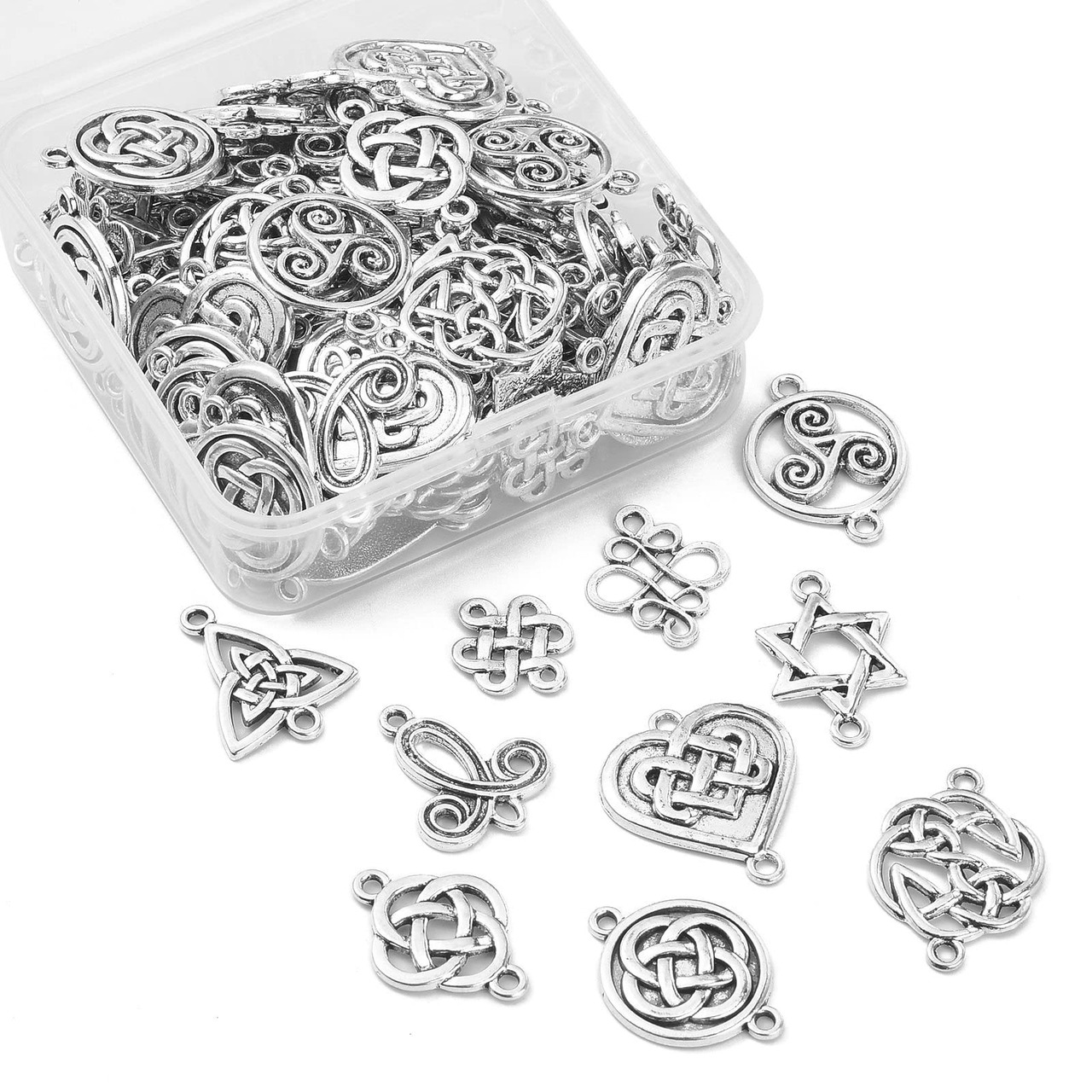 KitBeads 100個 ミックススタイル トリニティノットチャーム チベットウィッカフラワーコネクターチャーム アンティークシルバー ケルトノットチャーム ジュエリー製作用 バルク品