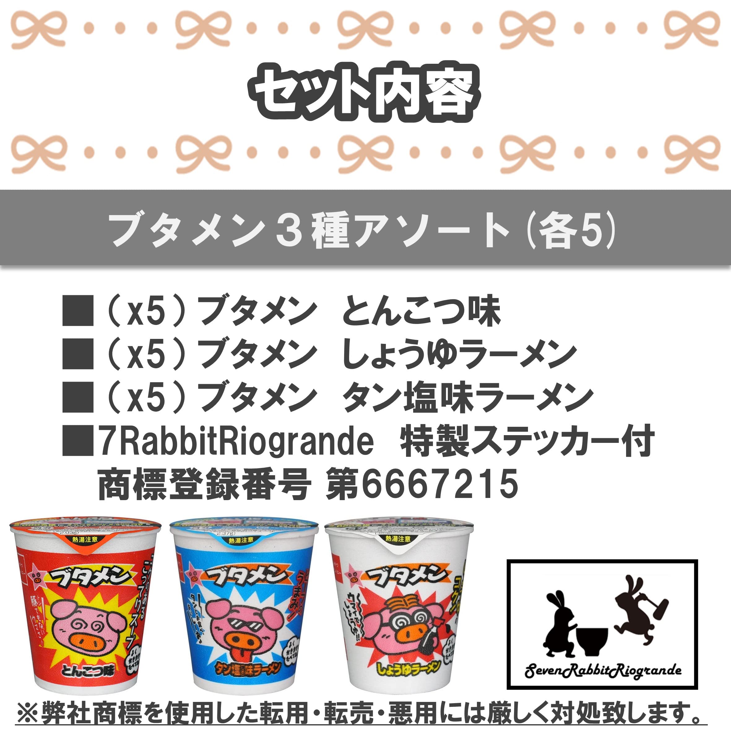 お好きな味が選べる ブタメン 3種15個 ブタメン3種アソート とんこつ味 カレーラーメン しょうゆラーメン タン塩味ラーメン 7RabbitRiograndeオリジナルステッカー付 【商標登録番号 第6667215】(とんこつ/しょうゆ/タン塩)