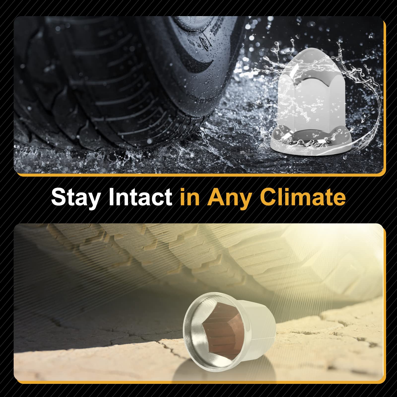 【魅力的で耐久性】 HQALTYナットカバーはプレミアムABS製で、クロムメッキと研磨の後に鏡のような仕上がりになっています。 当社のナットカバーは、魅力的な外観と優れた防錆性を備えており、温度や環境に関係なくナットをしっかりカバーして保護するための耐久性を保持できます。