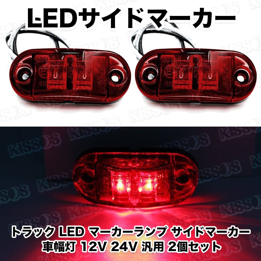 トラック LED マーカーランプ サイドマーカー 車幅灯 12V 24V 汎用 2個セット (レッド)