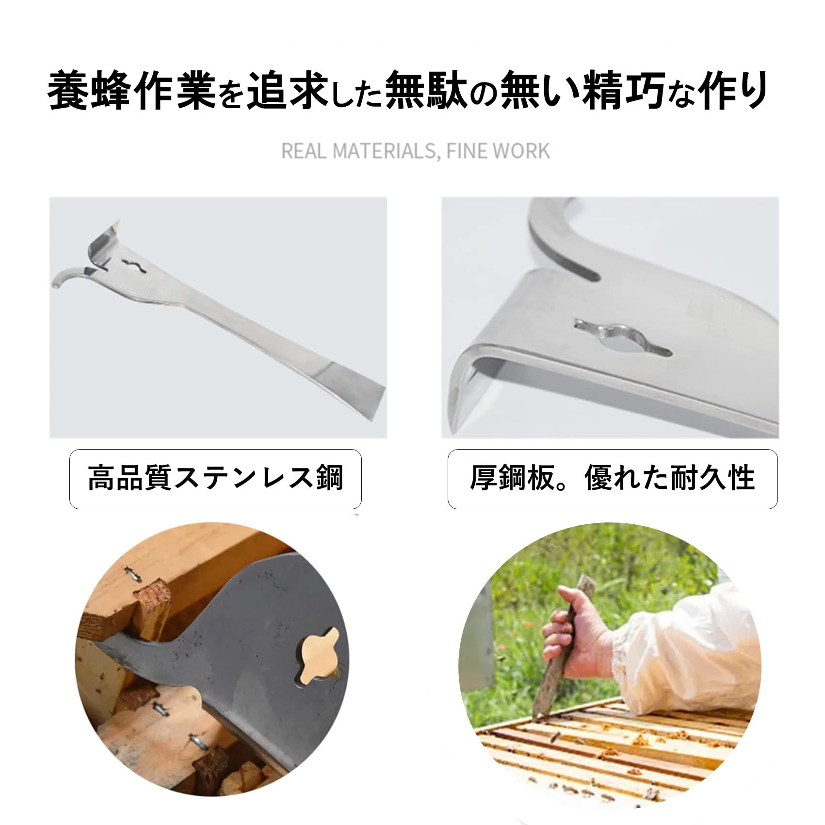 養蜂作業の作業性、能率性を追求した精巧で無駄の無い作りのハイブツールです。高品質ステンレス鋼で優れた耐摩耗性、耐久性をほこりタフな養蜂の現場を支えます。