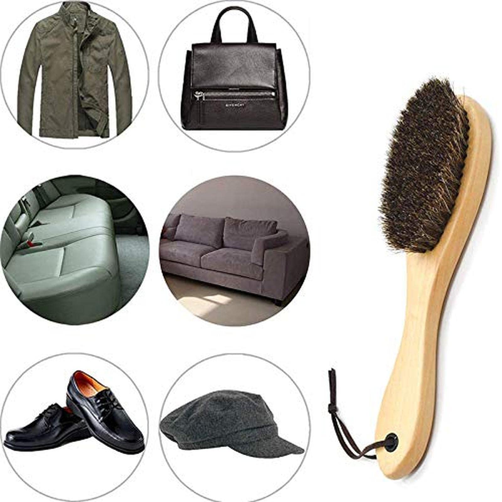 【花粉や埃除去】革カバン、革靴など革製品の保養に表面のクリーンと保養にできる、光沢も出る。馬毛ブラシの清潔力は強いし、馬毛ブラシは細かいところまで入り、花粉や埃が落ちる、洋服ブラシとしてソファー、布団、靴などにもきれいに掃除できます。