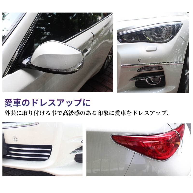 ■外装に取り付ける事で高級感のある印象に愛車をドレスアップ.<br>■光沢のあるシルバータイプなので、どんな色の車にも相性バツグン!<br>■剥離紙をはがして貼るだけの簡単取り付け。<br>■ドアバイザーやドアサイド、フロントグリルフロント、サイド、リアなど貼り付け箇所はアイデア次第!<br><br>【商品内容】:車用メッキモール<br>【カラー】:シルバー<br>【素材】:PVC<br>【幅】:6mm<br>【長さ】:約13M<br><br>○使用上の注意事項○<br>※商品取付け時や取付け後による車輌の損害、直接・間接の損害・取付・取り外しの際に生じた工賃、代車手配料等についての責任は弊社は一切負いません。<br>※仕様は改善の為に予告なく変更する場合があります。<br>※ディスプレイ画面等の環境上、写真と実際の商品の色とは多少違う場合がございます。<br>※海外輸入商品により、軽い汚れ/ダメージ等がついている場合がございます。<br>○以上を了承の上ご購入ください○