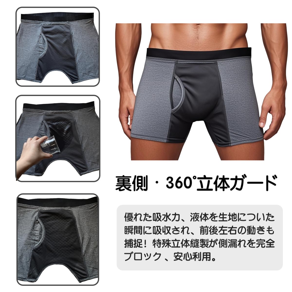 紳士用失禁ショーツ 2枚組 250cc大容量 アメリカサイズ ブラック グレー 介護用パンツ 漏れ防止 3断層構造 異臭対応 メンズ 吸水 尿漏れパンツ 失禁ショーツ 前開き 頻尿対策 安心な失禁対策 抗菌 竹繊維消臭加工 (XL)