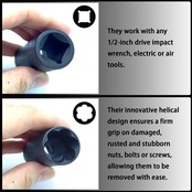 【効率的なラグナット取り外しツール】JEUCLEL ツイストラグナットソケットセットの革新的なスパイラルデザインにより、損傷、錆び、頑固なナット、ボルト、ネジをしっかりとグリップし、簡単に取り出すことができます。