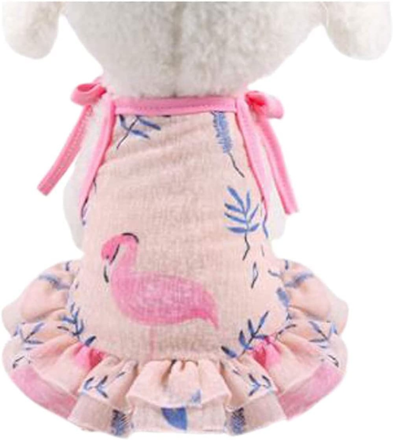 人気 通気性メッシュ小中型Tシャツ 犬服 可愛いワンピース 犬恋人服 カップ ル服 お散歩お出かけウェアに 春夏服 ドッグウェア 日焼き防ぐ 脱毛保護 (L, フラミンゴ)