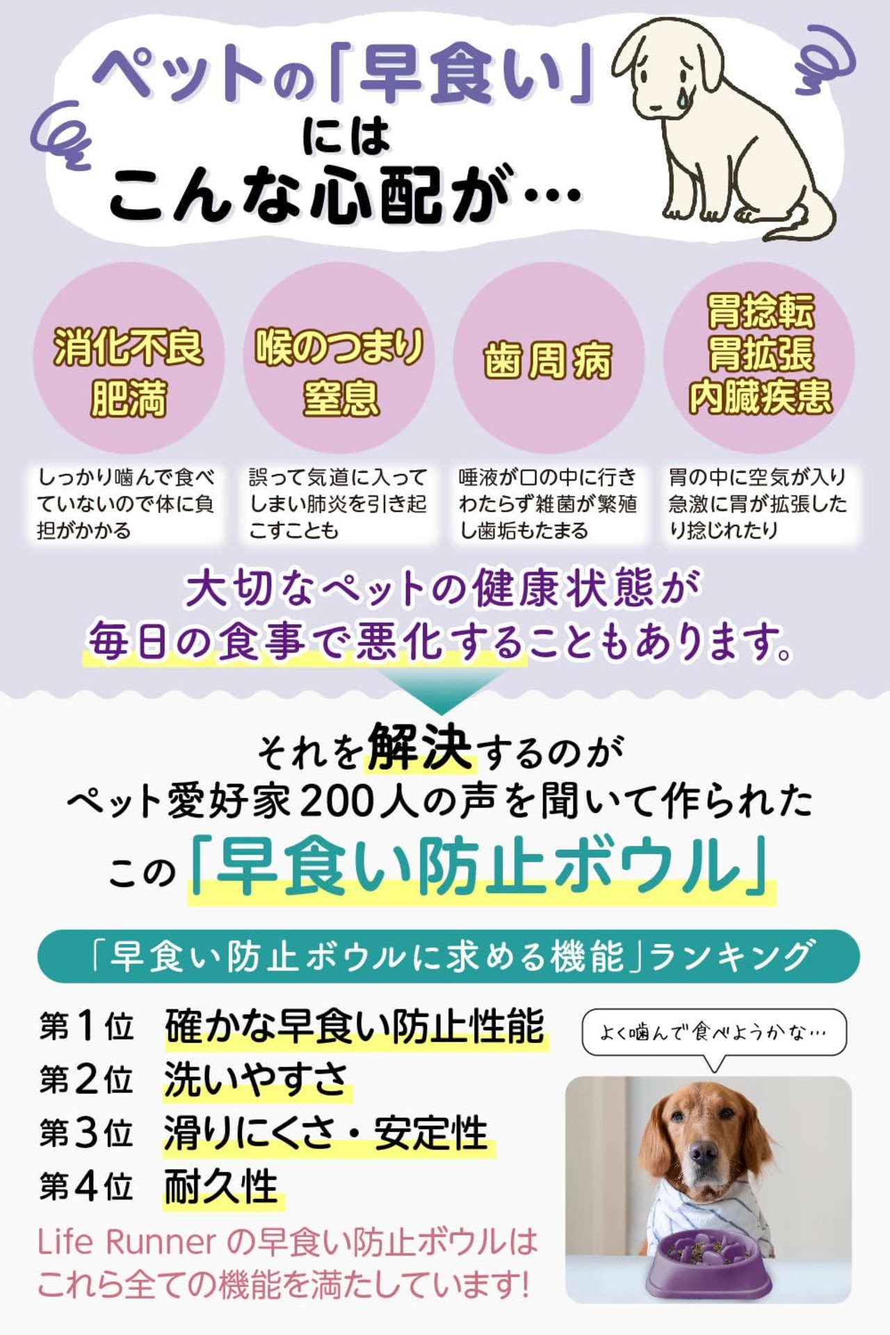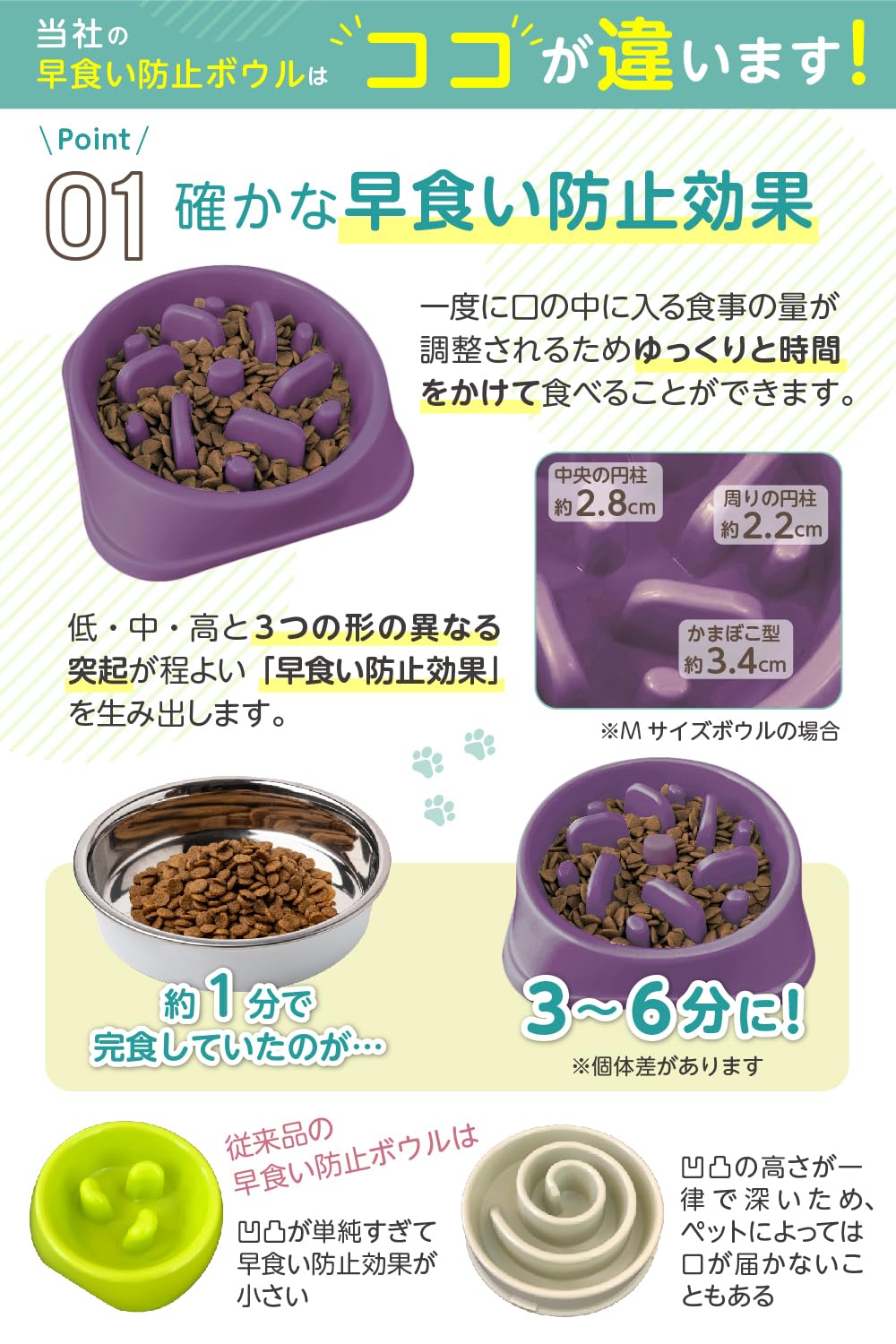 【獣医師推薦】 早食い防止 食器 犬 【独自の凹凸設計】 ワンちゃん 餌入れ (M,パープル)