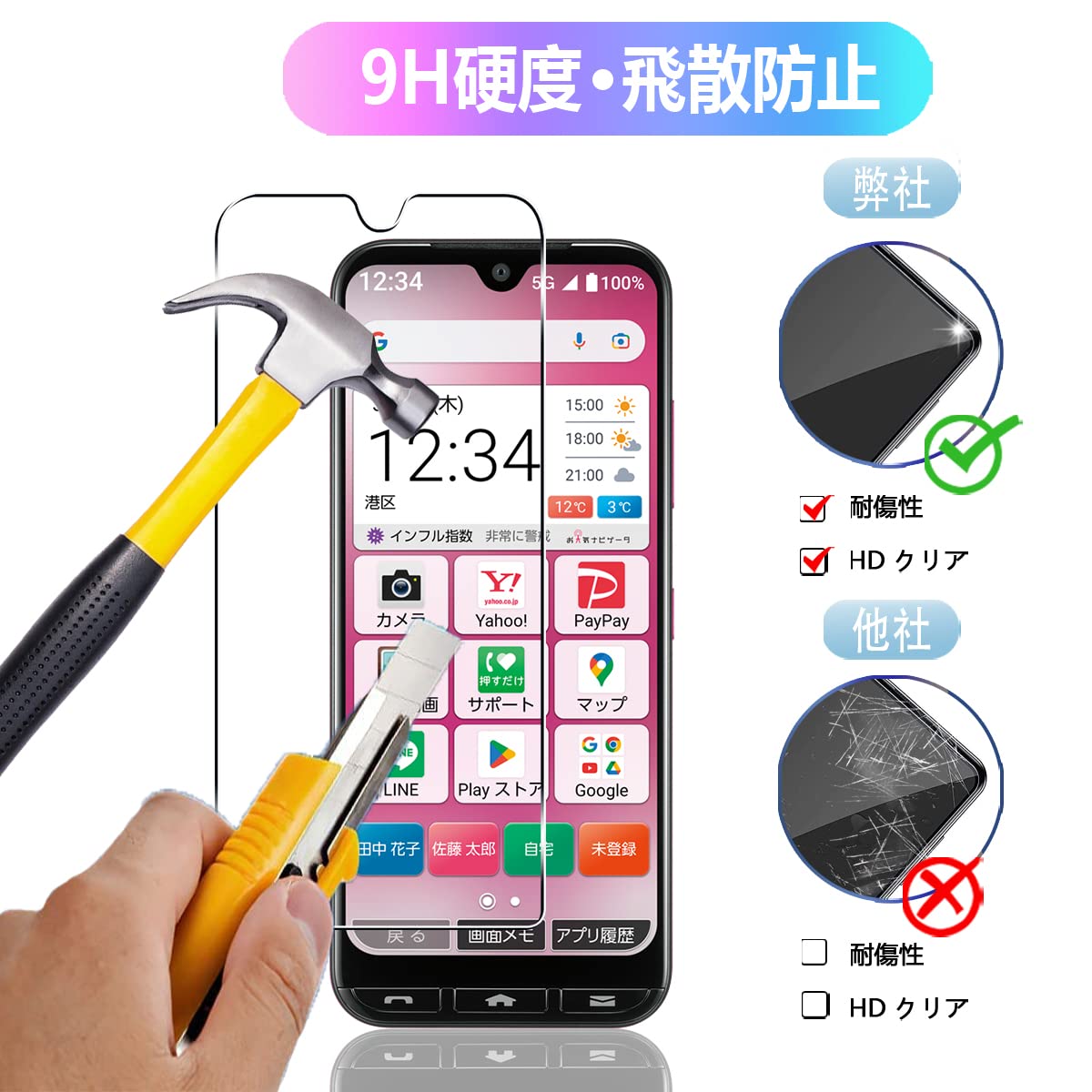 【9H硬度 飛散防止】 対応 かんたんスマホ 3 ガラスフィルム はす旭硝子で作られており、スマホ保護フィルムの中で最高レベルの9H硬度に達しています。手にフィットして持ちやすく滑りにくいので落ちにくいです。万が一落ちてもフィルムが衝撃を吸収してくれるので、スクリーンの損傷を最低限まで抑えられます。また、特殊な飛散防止設計により、ガラスが割れても飛散しないため、安心してお使いいただけます。