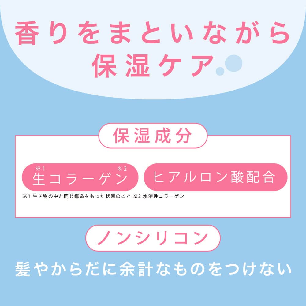 香りをまといながら保湿ケア まるでシャワー浴びたて、ヘアーもボディもふんわりやさしく香る保湿ミストです。