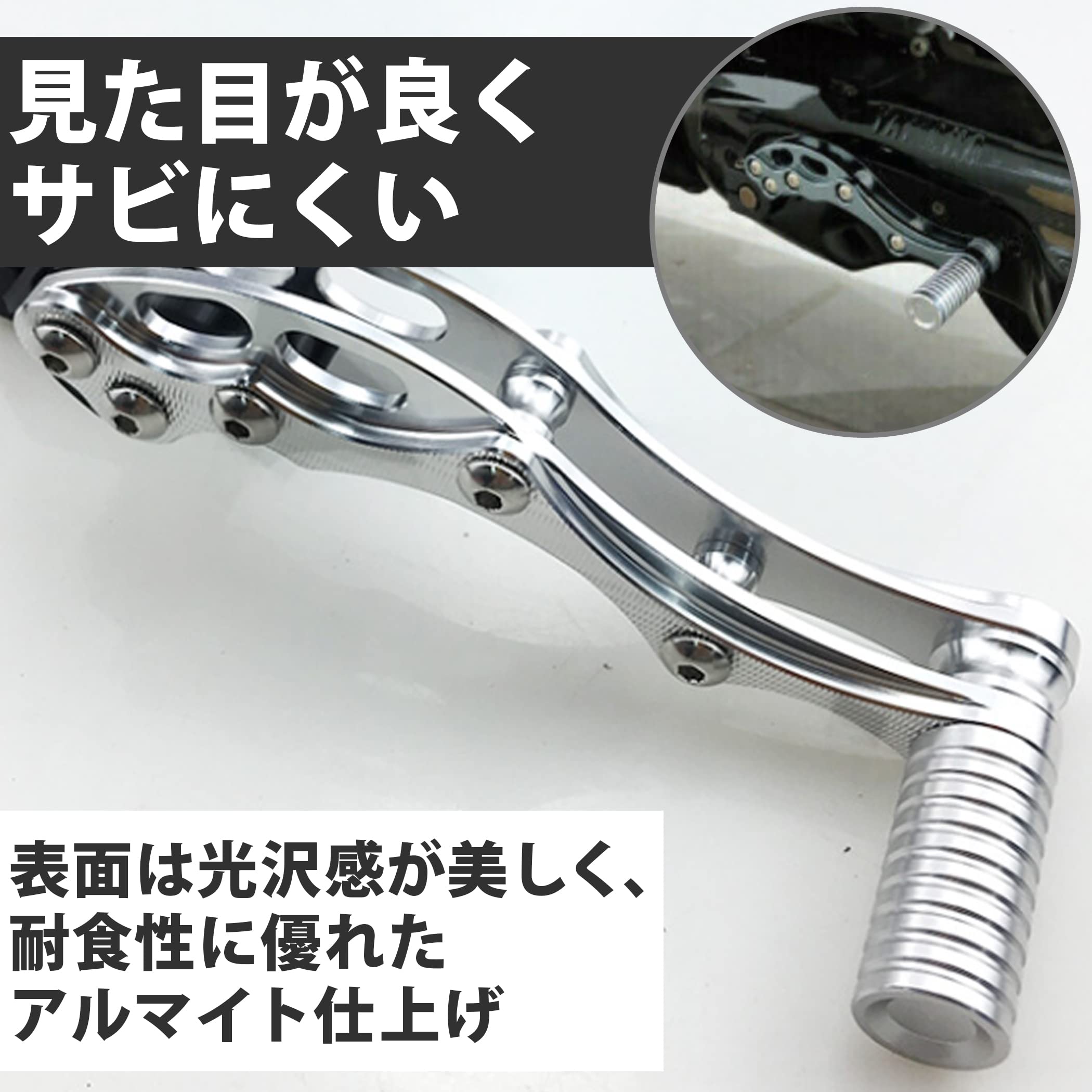 ボロボロになったキックペダルの交換に:錆びや経年劣化でボロボロになってしまったキックペダルを交換したい時に活用できるスクーター用のキックペダルです。ドレスアップをしたい時にもピッタリです。<br><br>見た目も良いアルマイト仕上げ:表面にはアルマイト加工が施されているので、耐食性や耐摩耗性にも優れています。見た目の光沢感もあるので、ワンポイントとして取り入れたい場合にもおすすめです。<br><br>耐久性も抜群:このキックペダルは耐久性に優れたアルミニウム合金素材を使ってつくられているので、頑丈で壊れにくいです。経年劣化による交換頻度を抑えたい場合にもおすすめのバイクパーツです。<br><br>さまざまな車種に取り付けできる:汎用タイプのスクーター用キックペダルなので、国内のさまざまなメーカーのスクーターに取り付けて使用することができます。※取り付け部分のサイズを確認の上、ご購入ください。<br><br>全長:約170mm ペダルの幅:約52mm 取り付け部分の穴の内径:約12mm 材質:アルミニウム合金 カラー:シルバー 付属品:M6ネジ 適応車種:ホンダ・ズーマーFI 、ヤマハ・BWS100など ※モニターの環境等により、色の見え方に若干差が生じる場合がございます。