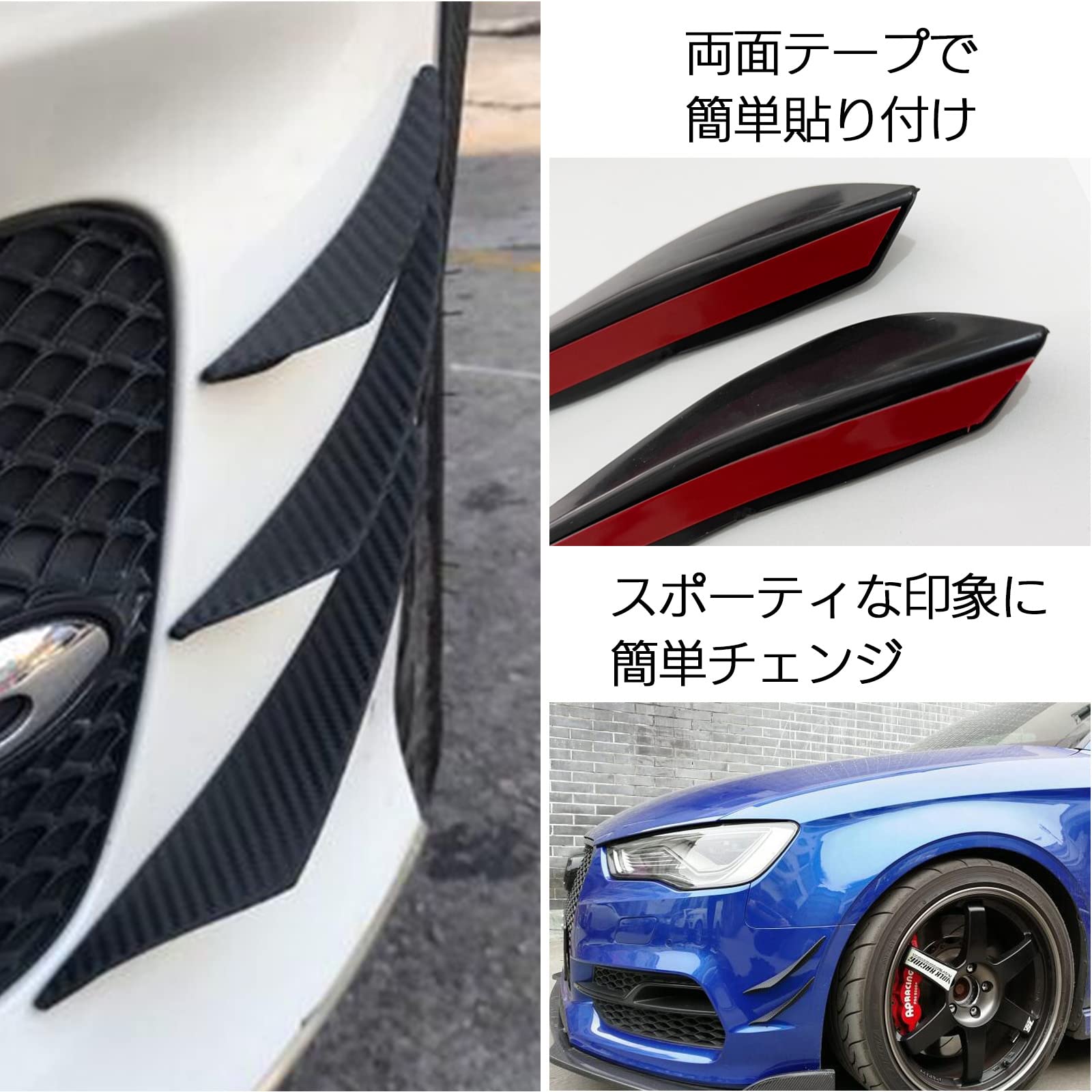 モデルノ ラ テール エアーナイフスポイラー 車用 4個 カナード フロントカナード ドレスアップ 汎用 リップスポイラー YM-274-CN-6 カーボン