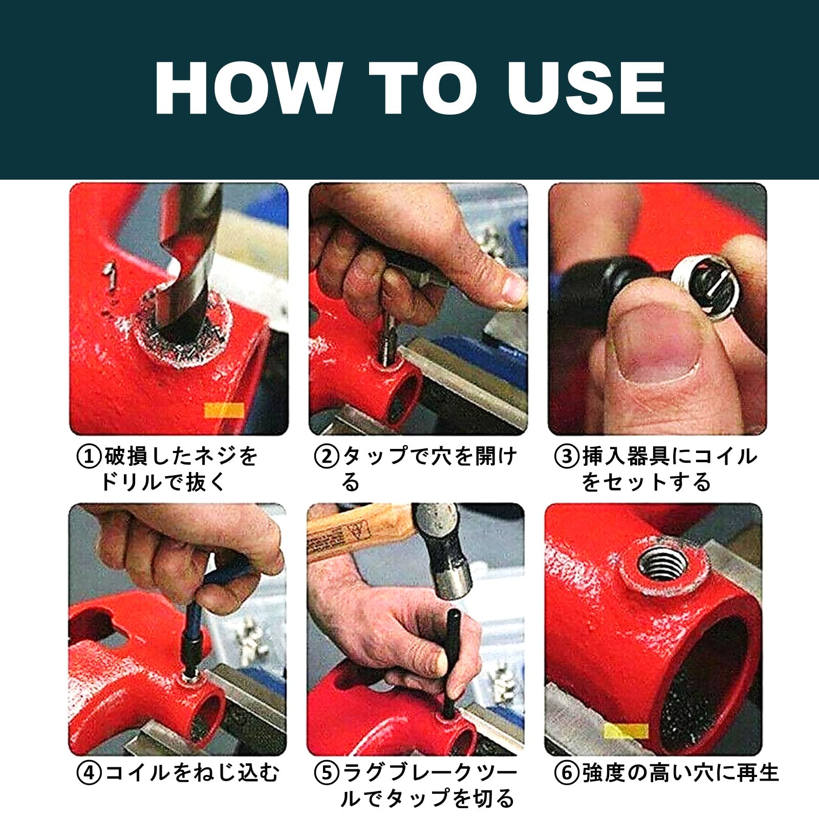 自動車の部品やボルトすべり、電子機器などに適用でき、幅広い場面で活躍するアイテムです。コイルを使い再生することで修繕前よりも強度の高い穴になります。