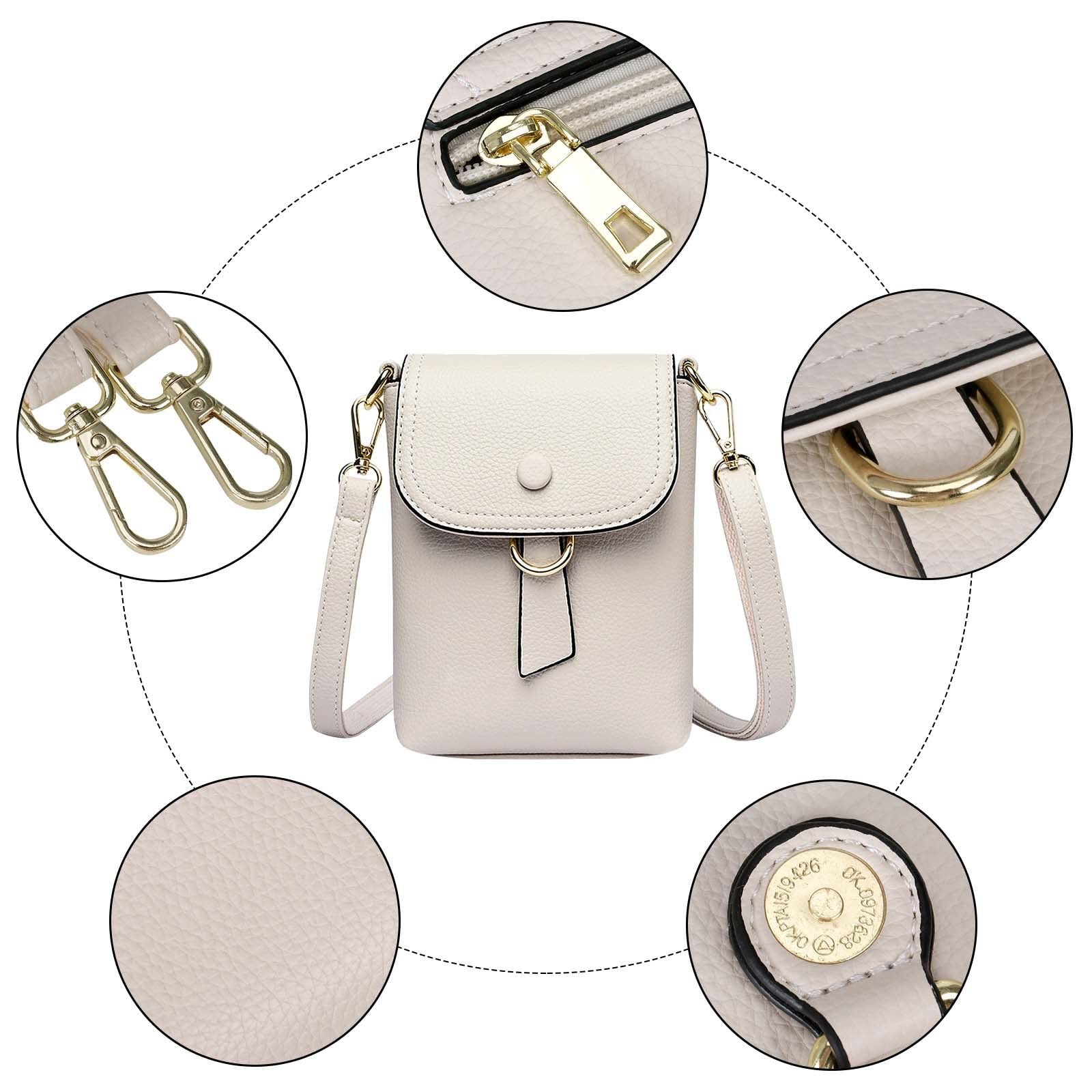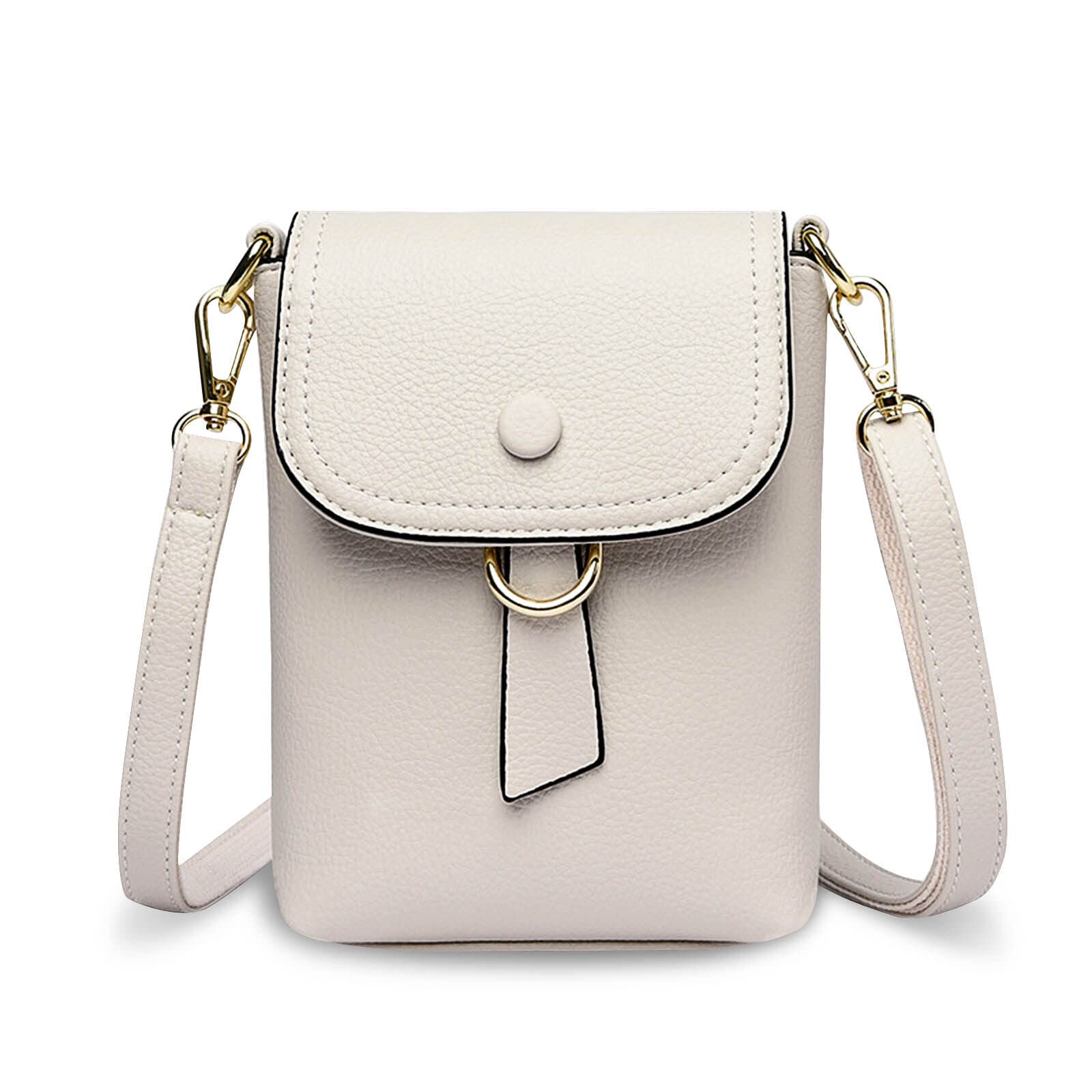 Perselief レディース ミニショルダーバッグ クロスボディ ソフトレザー フラップオーバー 携帯電話バッグ マルチポケットと調節可能なストラップ付き ベージュ ワンサイズ, ベージュ, One Size