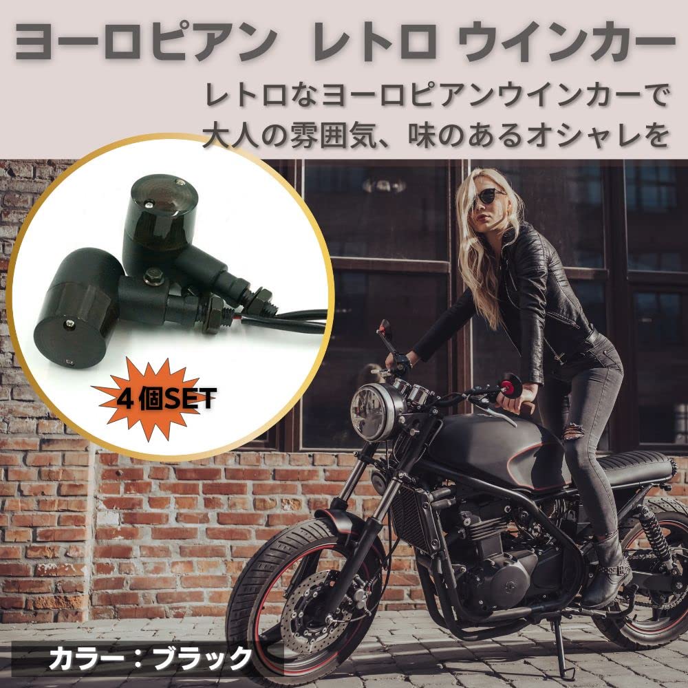 バイク ウインカー ヨーロピアン 円筒型 黒レンズ ライト ランプ 4個 セット 丸型 方向指示器 改造 レトロスタイル アルミ合金 ブラック サイドウインカー ハーレー モンキー ゴリラ など 汎用