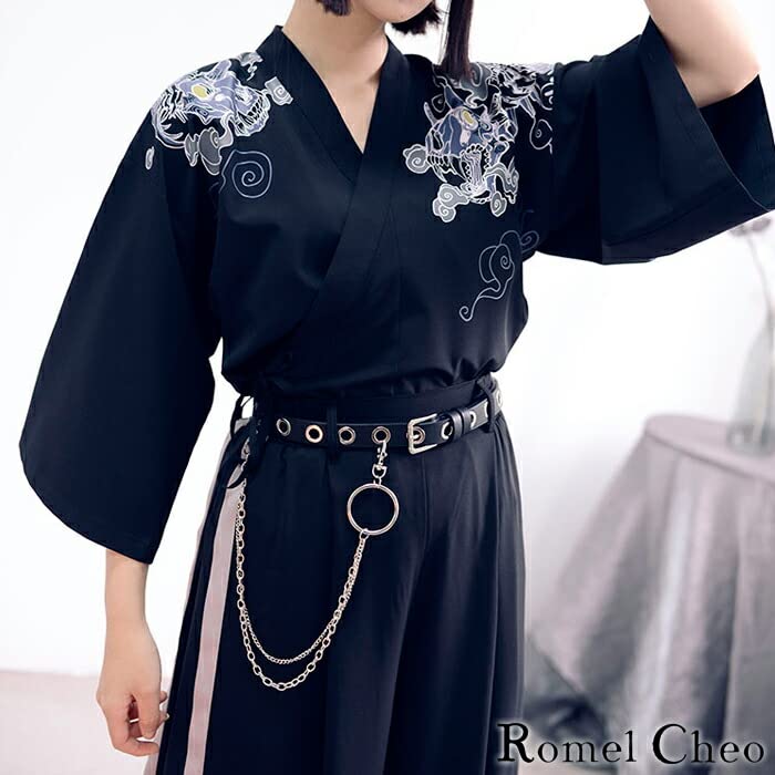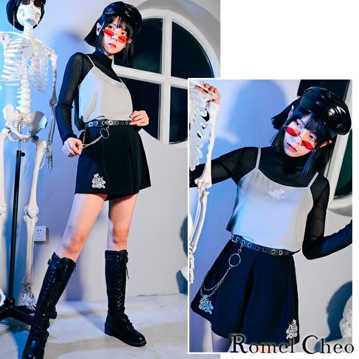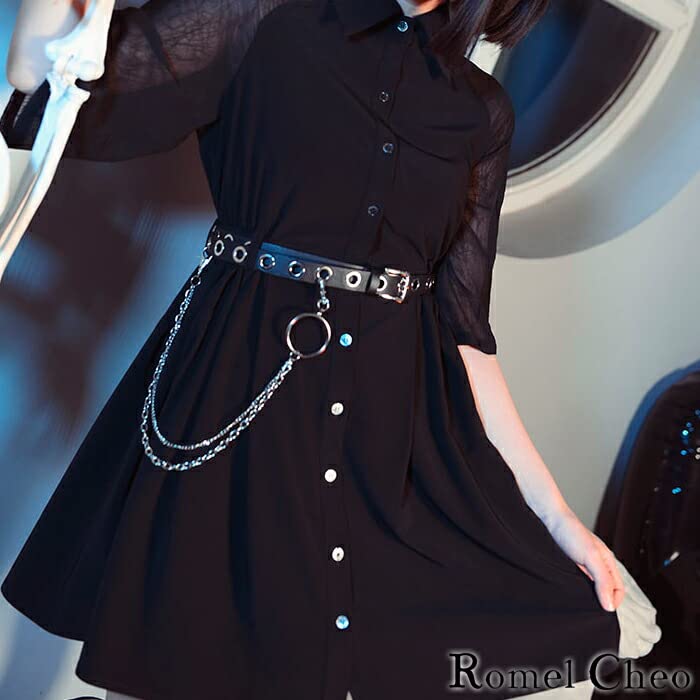 [RomelCheo] チェーン付き メタルリング ベルト 2連 鎖 装飾 ナスカン付 アクセサリー ストリート系 ロック パンク v系 ストリート系 ユニセックス レディース メンズ 男女兼用 ロメルチェオ