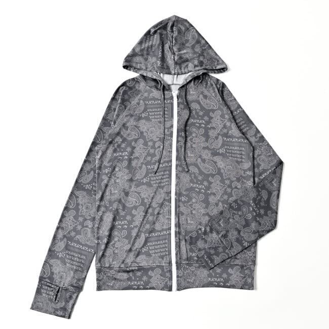 メンズ 柄ラッシュガード パーカー(Lサイズ) PAISLEY CHARCOAL フード付き 長袖 サーフィン 海水浴 水泳 サーフカード