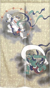 のれん工房 のれん 風神雷神 和風 和モダン おしゃれ 店舗用 飲食店 本縫い N 幅85×丈150cm 99830