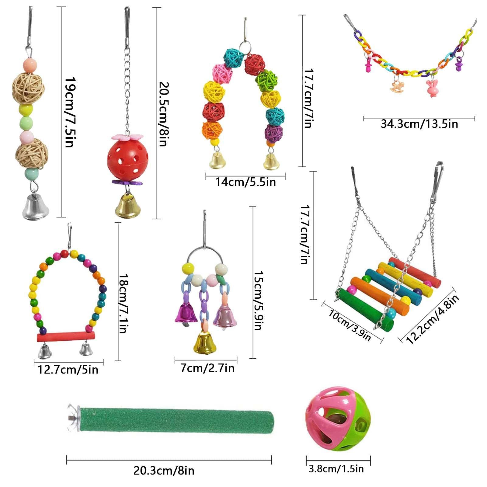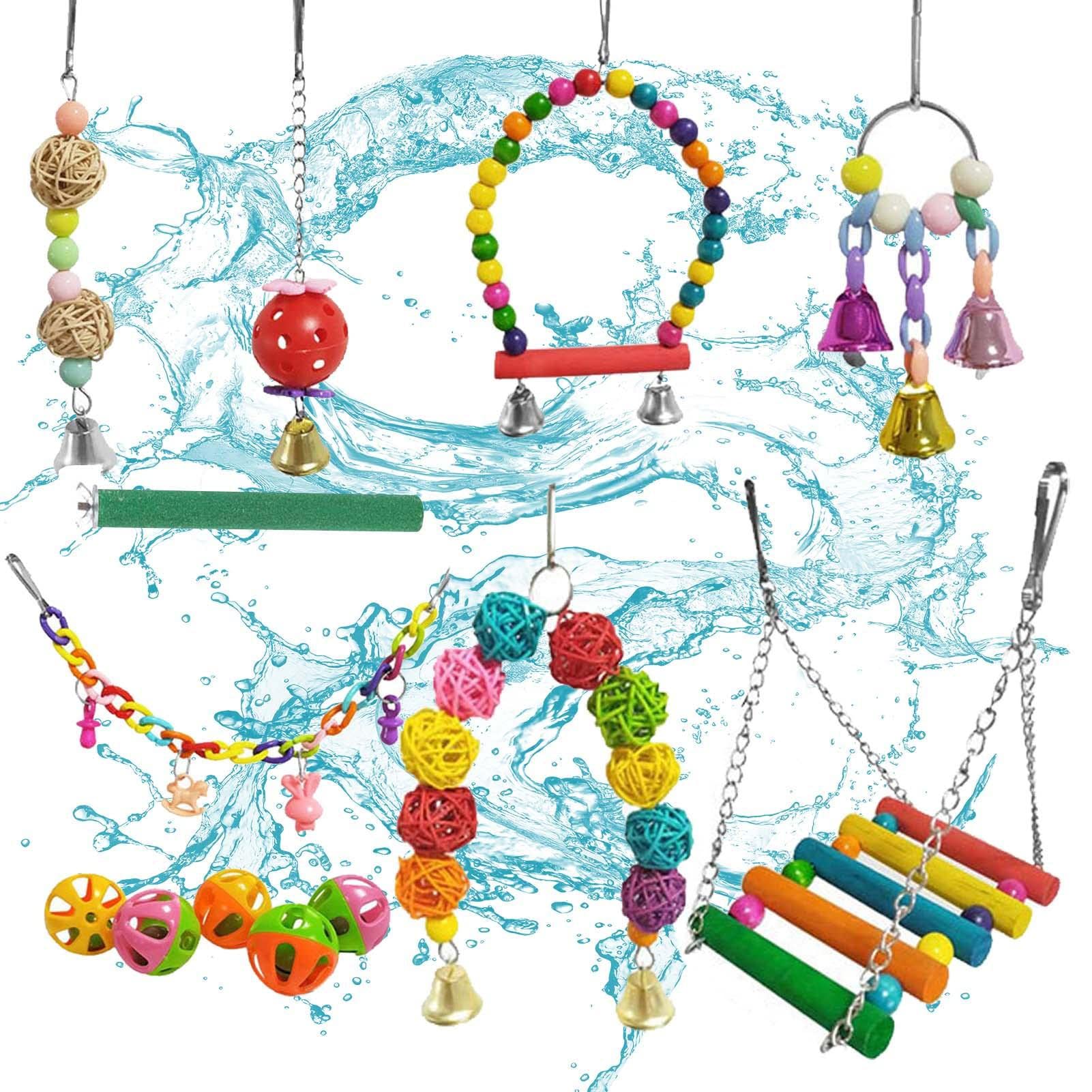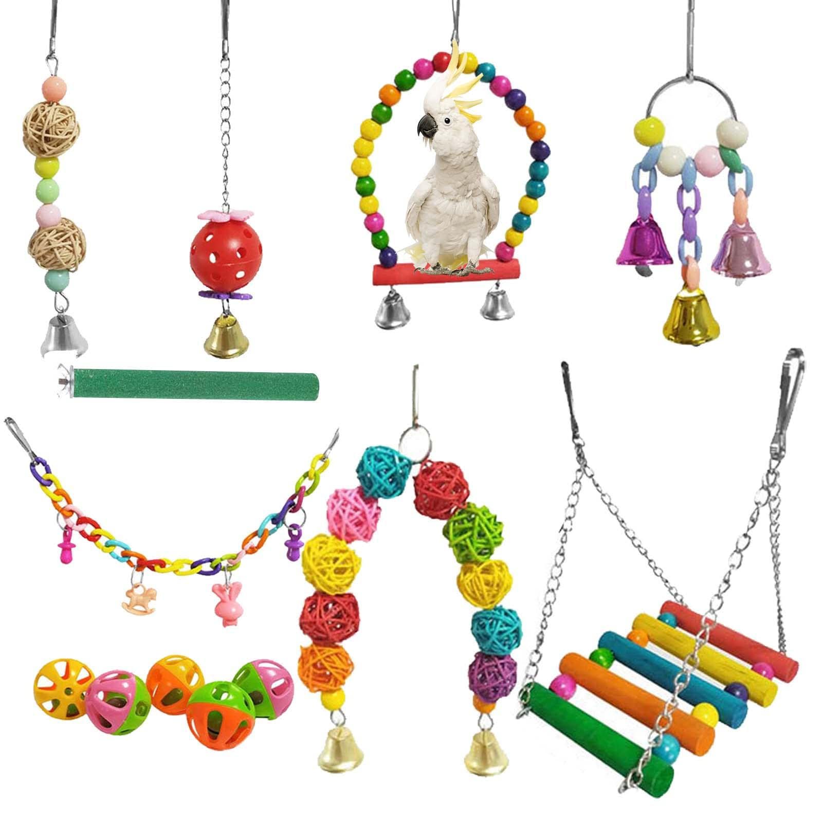 セキセイインコのおもちゃ | ベル付き バードスイング咀嚼玩具セット | オウムのエンターテイメント、インコ、ラブバード、ラタンボール、トレーニング用のベルケージおもちゃ