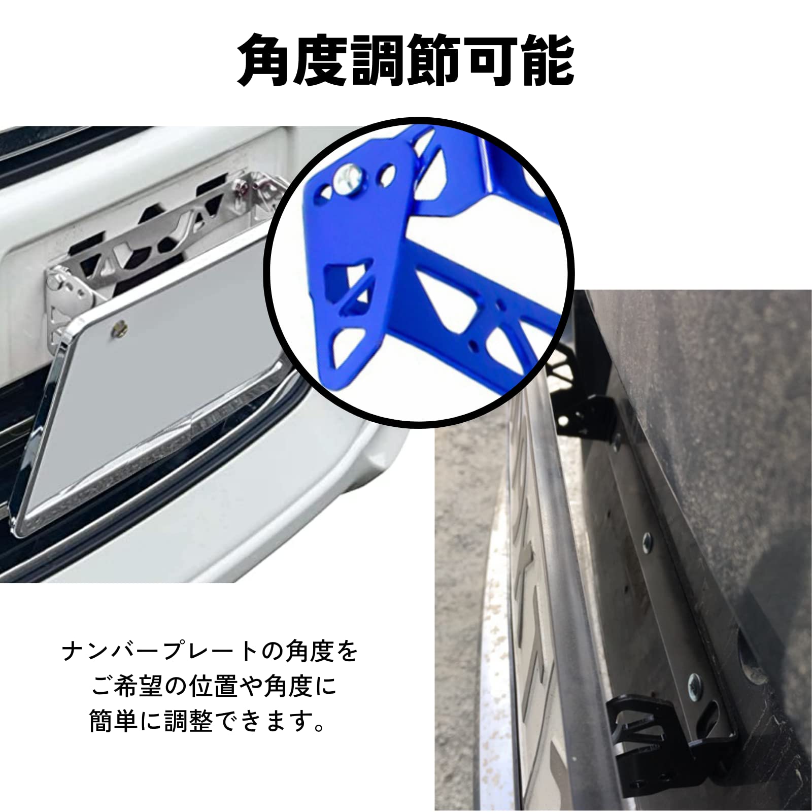 DIZLAS ナンバーステー 車 ナンバープレート ステー 角度調節 ステンレス製 盗難防止 ネジ付き (ブルー)