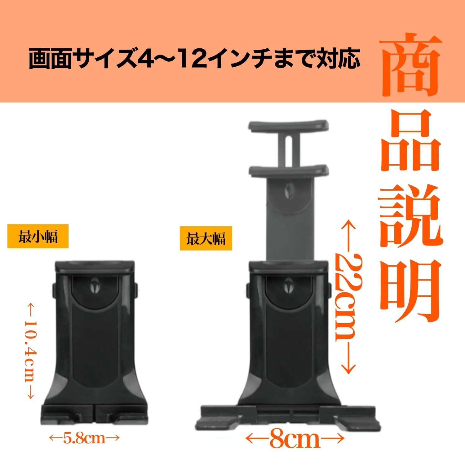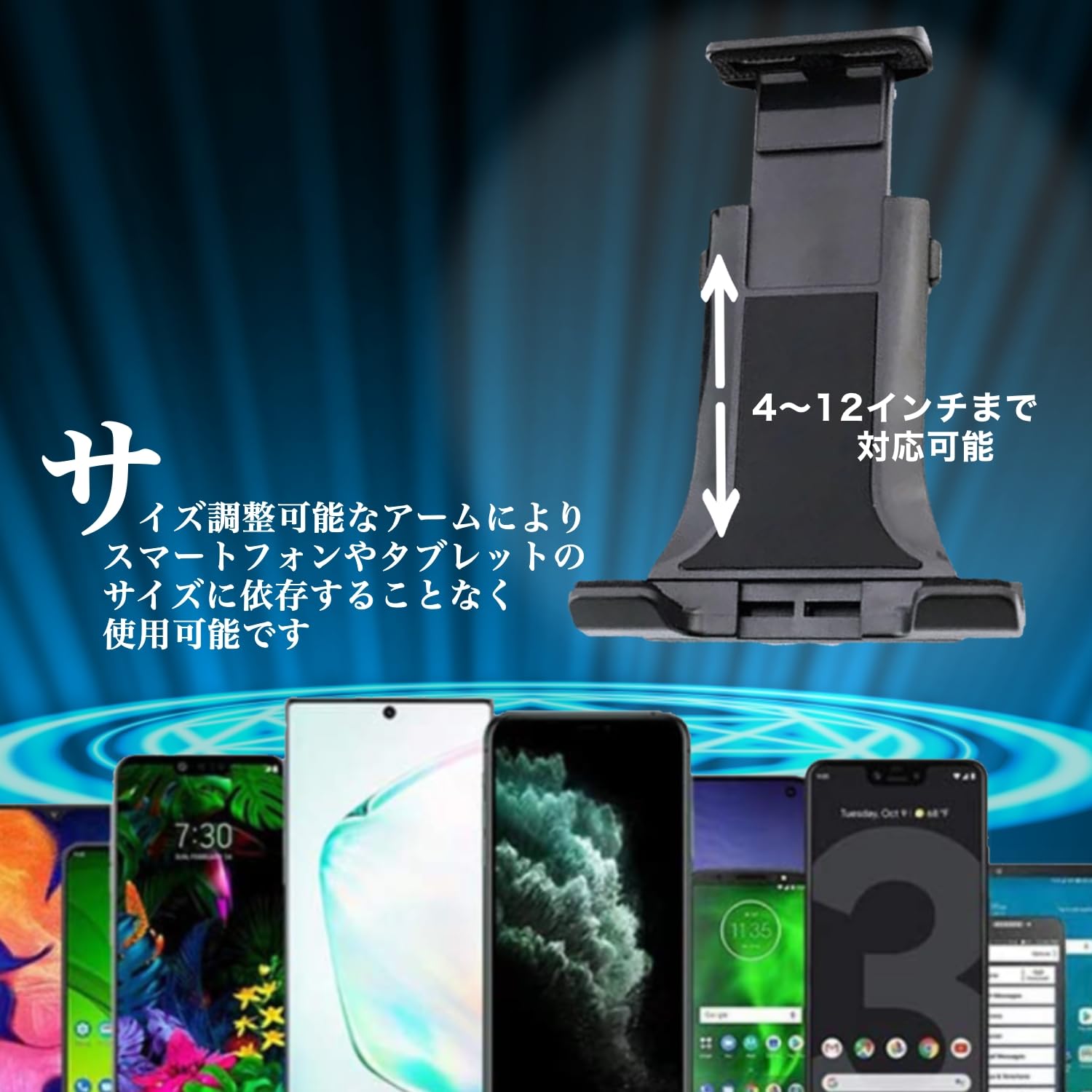 ✅サイズに関係なく利用可能なフレキブルアーム- スマートフォンやタブレットのサイズに依存しないフレキブルアームを採用しました。4-12インチの幅広い画面サイズに対応し、手帳型のケースを装着したままでも問題ありません。様々な機種に適用できるタブレットホルダー 車です。