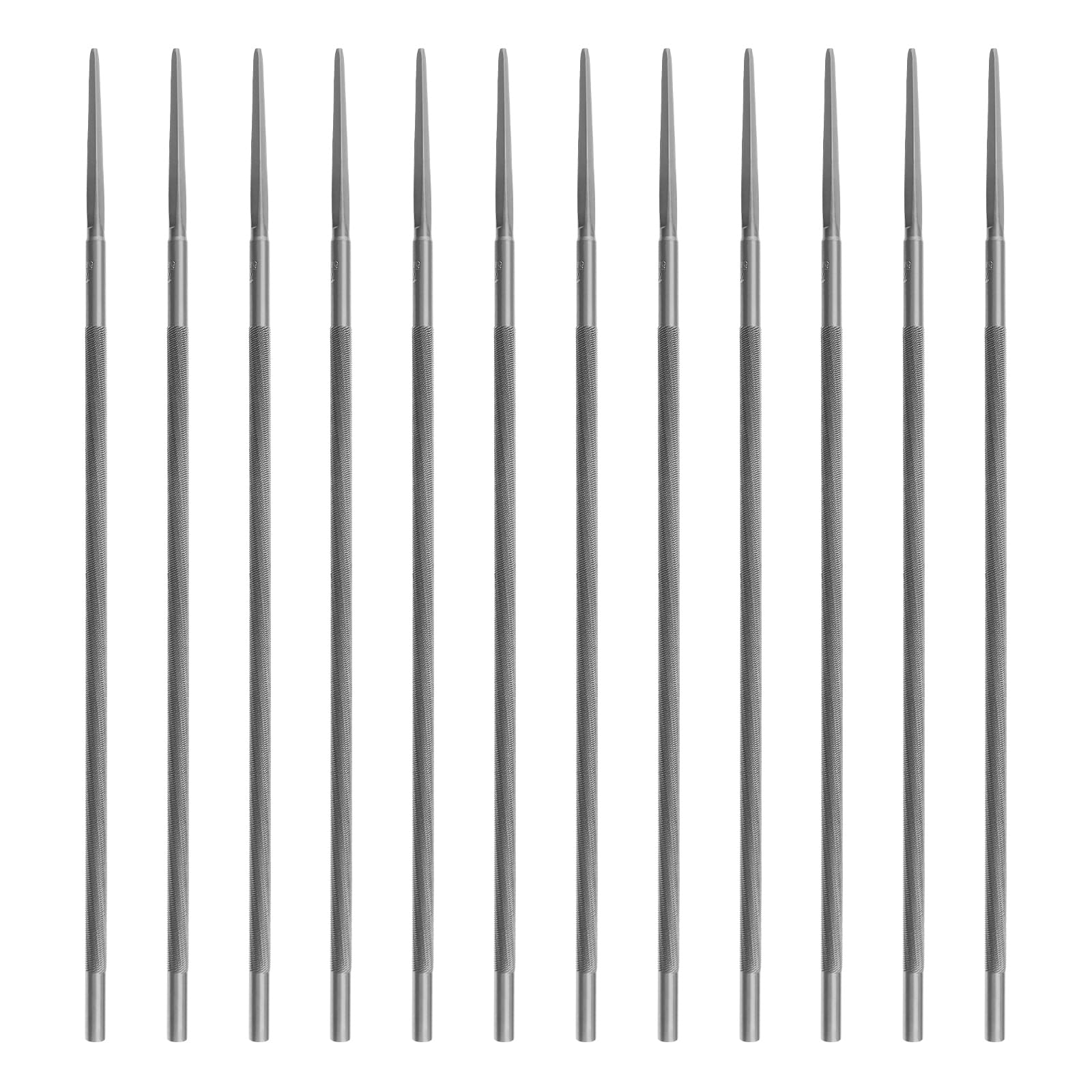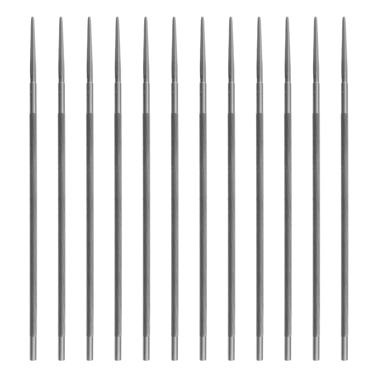 数量とサイズ: 製品には12個のピースが含まれており、それぞれ5.5mm x 200mmのサイズです。これは長さ8インチの尖ったチェーンのラウンドファイルです。