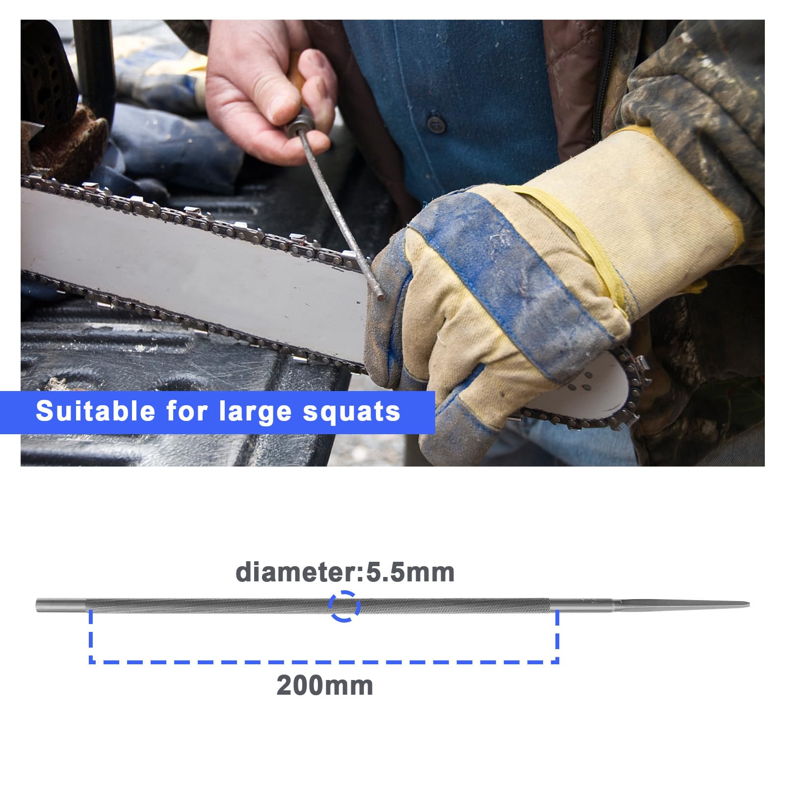 12個 ラウンドチェーンソーヤスリ スチールチェーンソーヤスリシャープナーアクセサリー チェーンピッチ3/8 & 0.404チェーンソー研ぎやすり 5.5mmx200mm シルバー