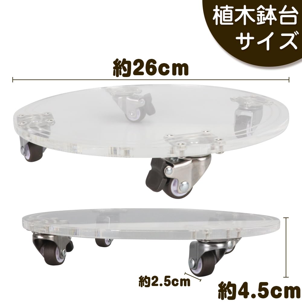 mono-deco フラワースタンド プランタースタンド 鉢置き台 キャスター付き ストッパー機能付き 植木鉢台 観葉植物鉢置台 アクリル製 26cm (2個セット)