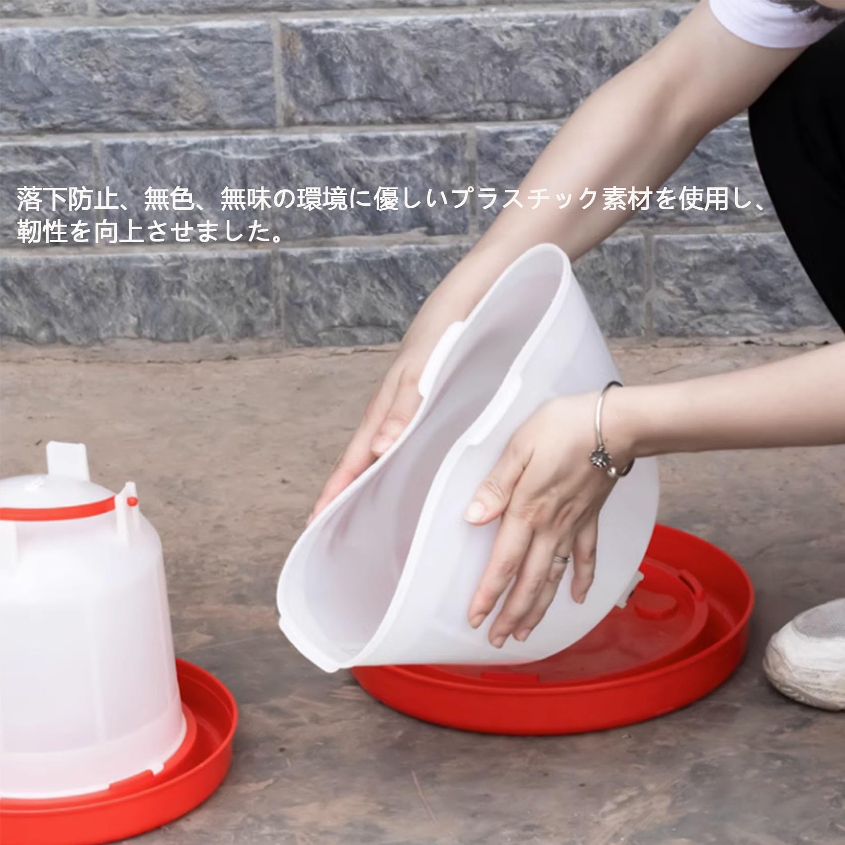 商品の説明<br> チキンフィーダー 家禽の餌箱 フードフィーディングホルダー アヒルのフードコンテナ<br> <br> 素材:プラスチック<br> パッケージ:自動給水器*1、自動給餌器*1<br> <br> サイズ:<br> 自動給水器1KG+自動給餌器1KG :<br> 自動給水器(受け皿直径17cm、高さ18cm)<br> 自動給餌器(受け皿直径18cm、高さ19cm)<br> <br> 自動給水器3KG+自動給餌器3KG:<br> 自動給水器(受け皿直径23.5cm、高さ30cm)<br> 自動給餌器(受け皿直径26cm、高さ27cm)<br> <br> 自動給水器6KG+自動給餌器6KG:<br> 自動給水器(受け皿直径30cm、高さ35cm)<br> 自動給餌器(受け皿直径32cm、高さ31cm)<br> <br> 自動給水器10KG+自動給餌器9KG:<br> 自動給水器(受け皿直径36cm、高さ40.5cm)<br> 自動給餌器(受け皿直径38cm、高さ36cm)