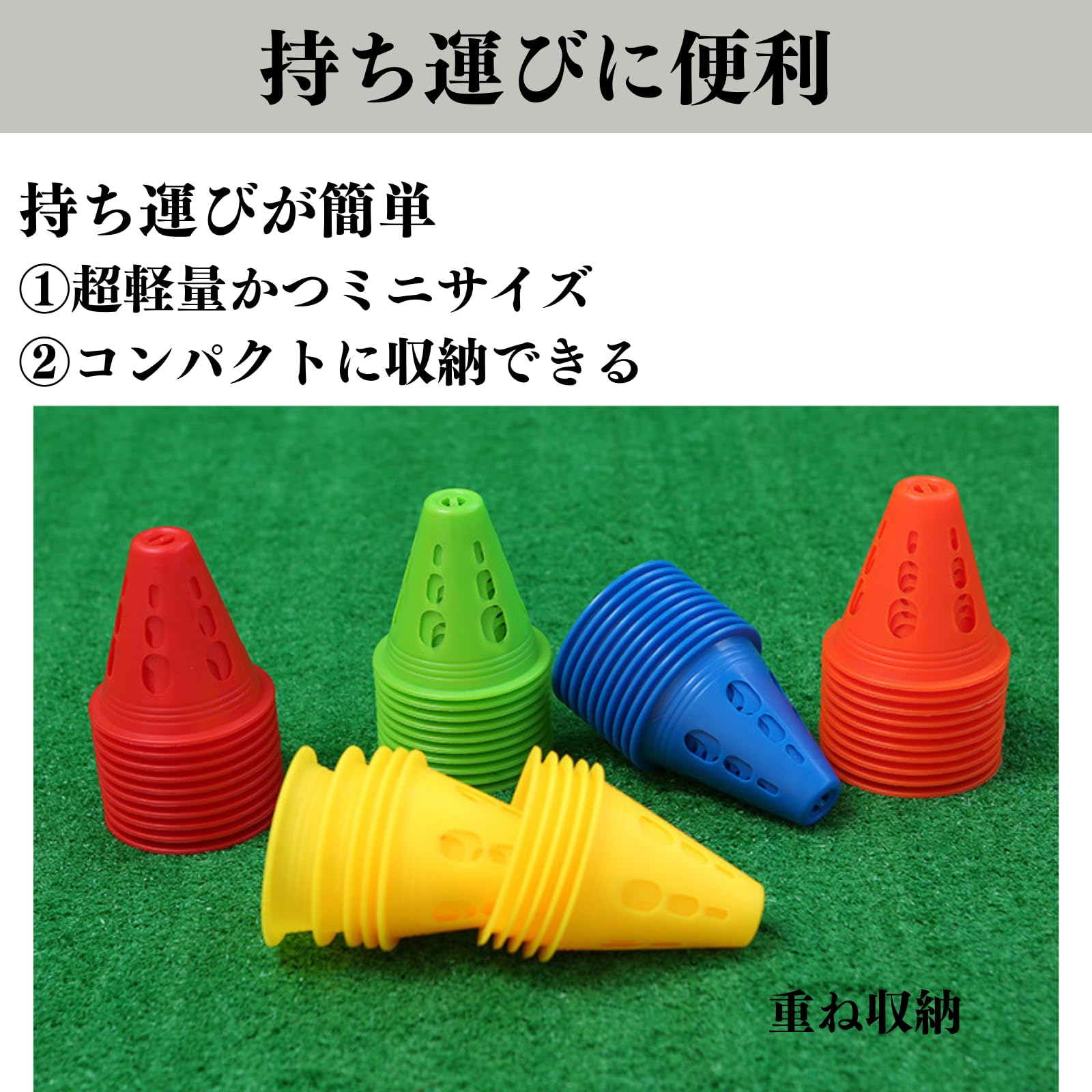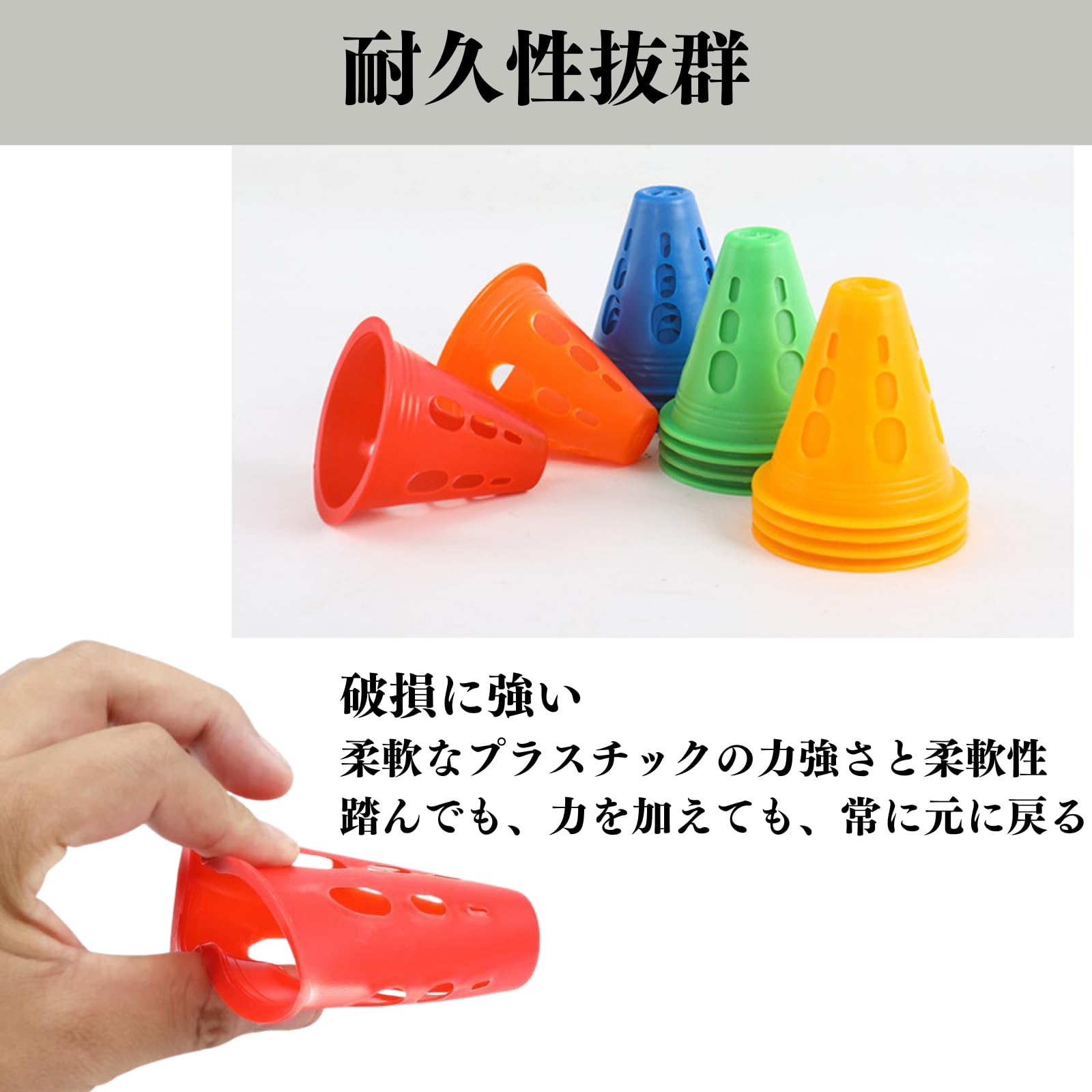 Quikaboo マーカーコーン ミニ サッカー 50枚 5色セット カラーコーン 三角コーン マーカー コーン ミニコーン 穴あき 軽量 運動会 スポーツ用品