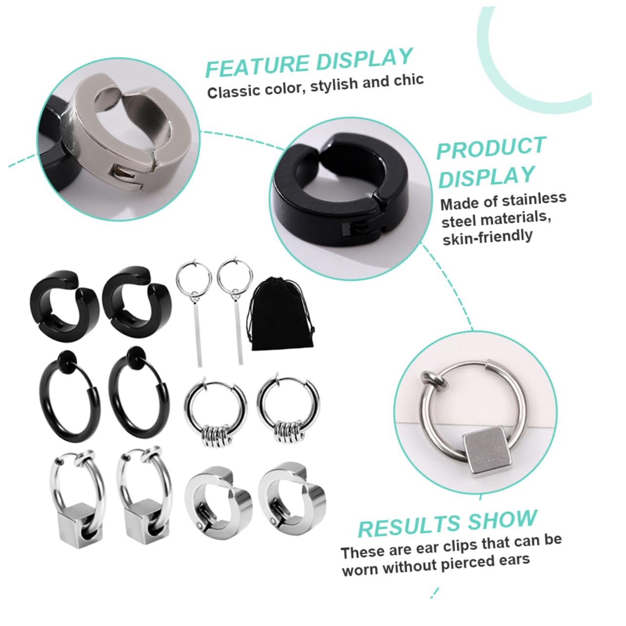 <b>パッケージには、</b><br /> 6 x ペアのイヤークリップ、1 x 布バッグ<br /><br /><br /><b>の特徴</b><br /> - 材質: ステンレス鋼メンズイヤリングセット<br />- サイズ: 0.90x0.90x0.40cm/0.35x0.35x0 メンズスーツ。<br />- カラー: メンズ用アソートカラーダングルイヤリング<br />- ステンレス鋼素材で作られており、耐久性と実用性の男性用クリップオンイヤリングにご いただけます。<br />- 光沢が明るく持続し、さまざまなスタイルの服に自由に合わせることができる男性用クリップオンイヤリング。<br />- 耳に穴を開ける必要がなく、耳に挟むだけで簡単に着脱できるファッションイヤリングです。<br />- 見た目の個性、独創的なデザインでエレガントで 雰囲気をプラスしたノンピアスイヤークリップ。<br />- 誕生日、バレンタインデー、クリスマス、新年、その他の特別な機会の男性の耳の装飾に最適なギフトです。<br /><br /><b>商品情報</b><br /> トレンディなイヤリングは、ファッションの好みを強調し、あなたをよりユニークにすることができます。トレンディな装飾が軽く、人目を引く、快適な着用感で、毎日の耳の装飾に非常に適しています。男性用のノンピアスイヤリング。ステンレス鋼素材、耐久性があり、滑らかで美しい。メンズジュエリーセットは、創造的な形状のイヤークリップです。